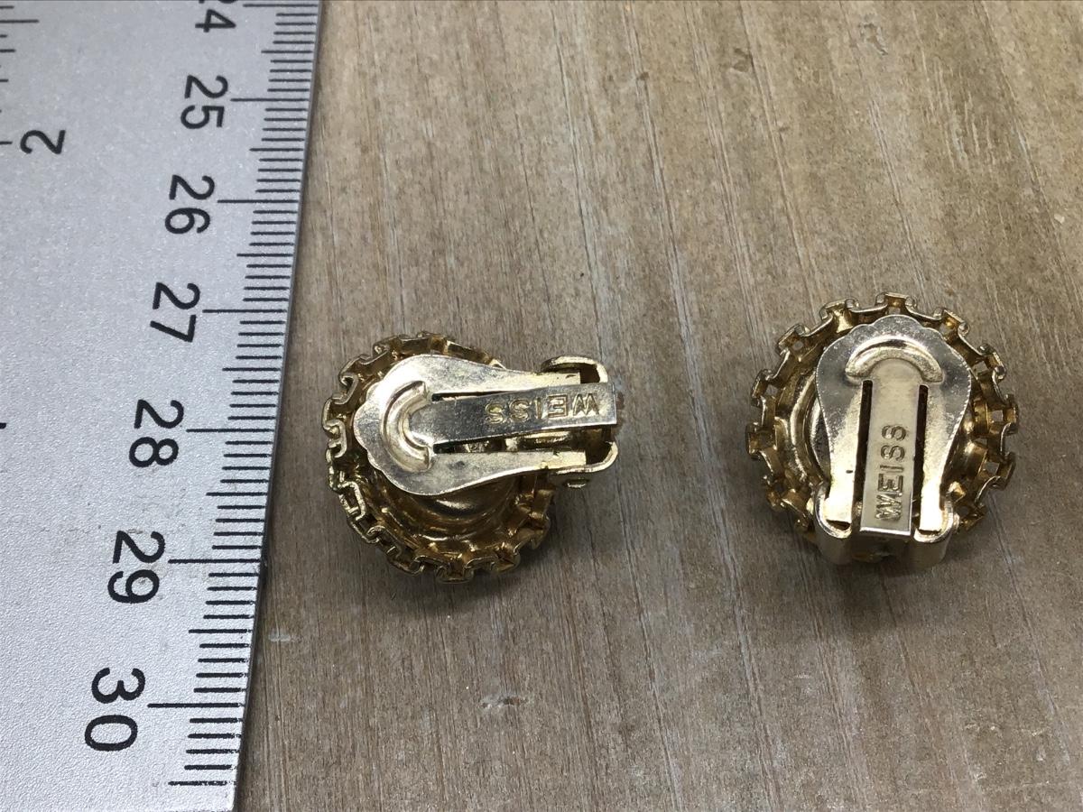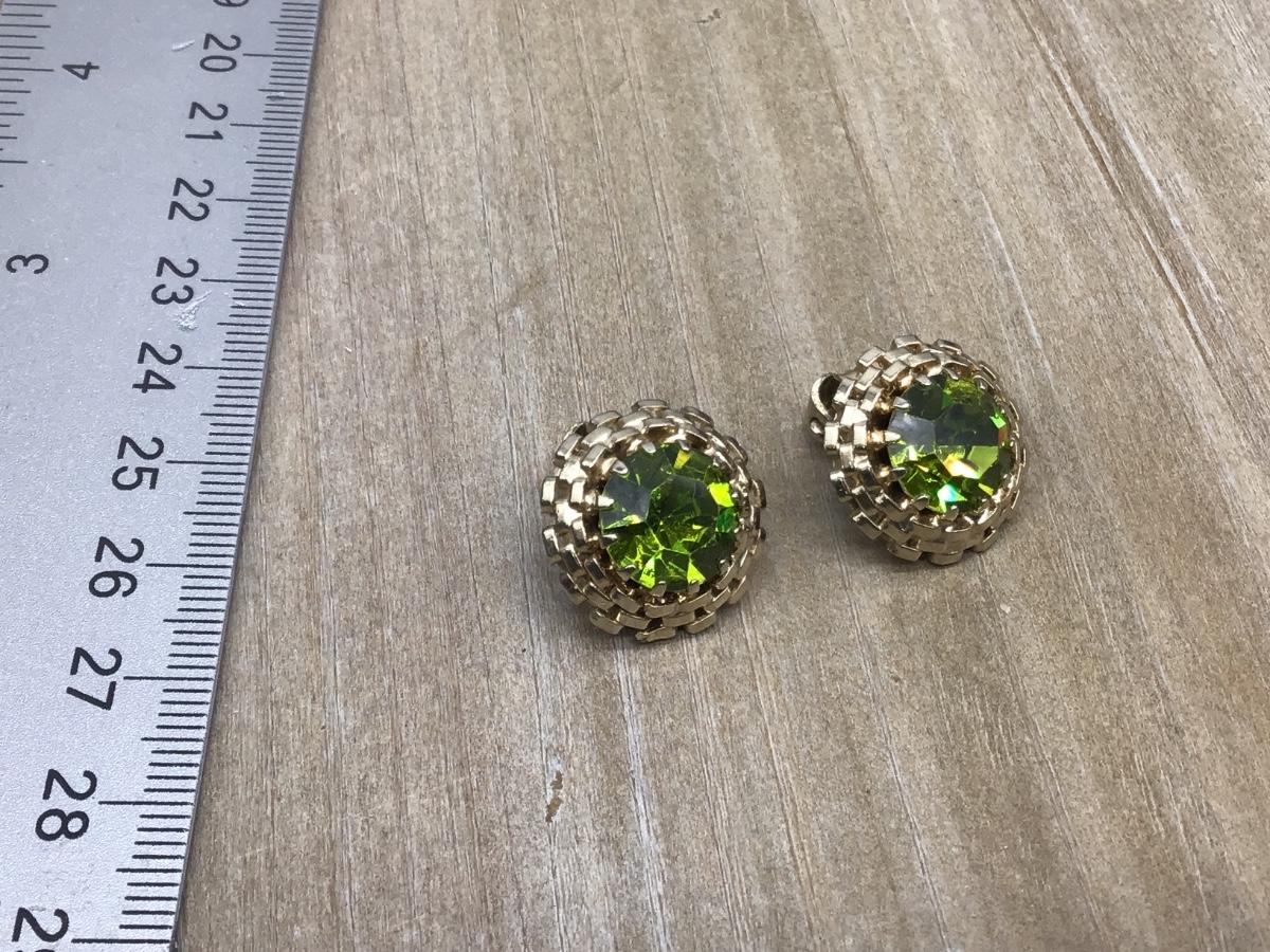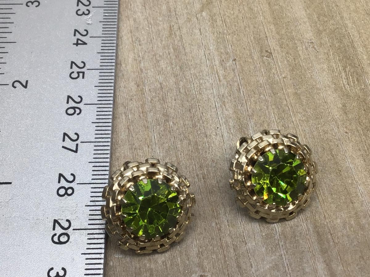 GORGEOUS VINTAGE SIGNED WEISS CLIP ON EARRINGS GREEN RHINESTONES