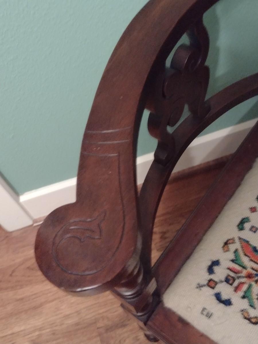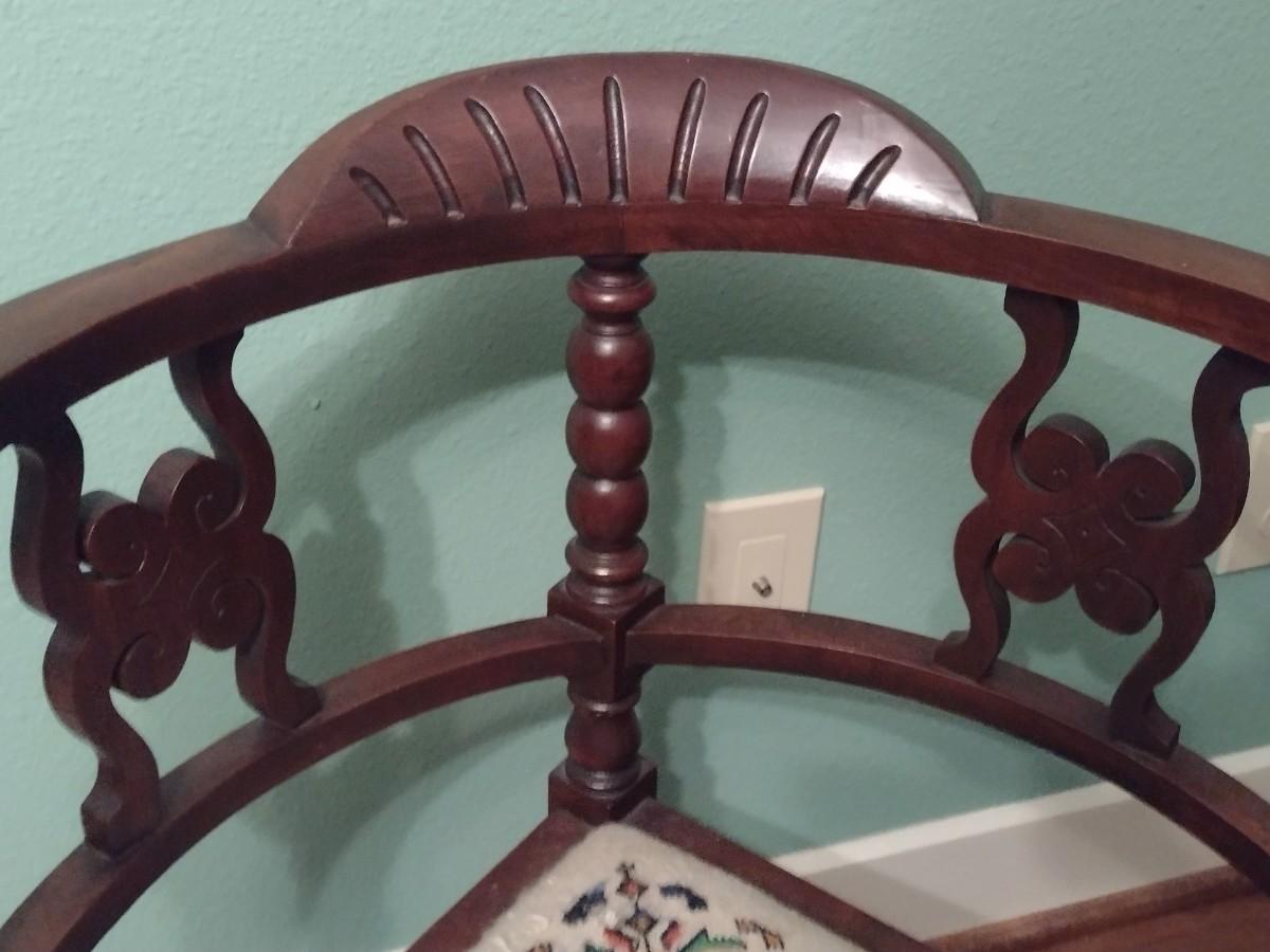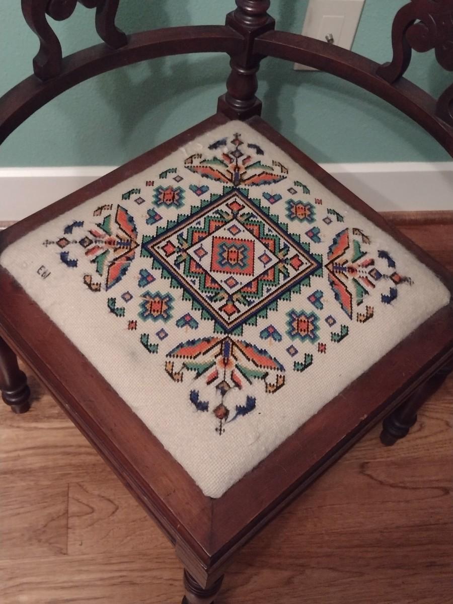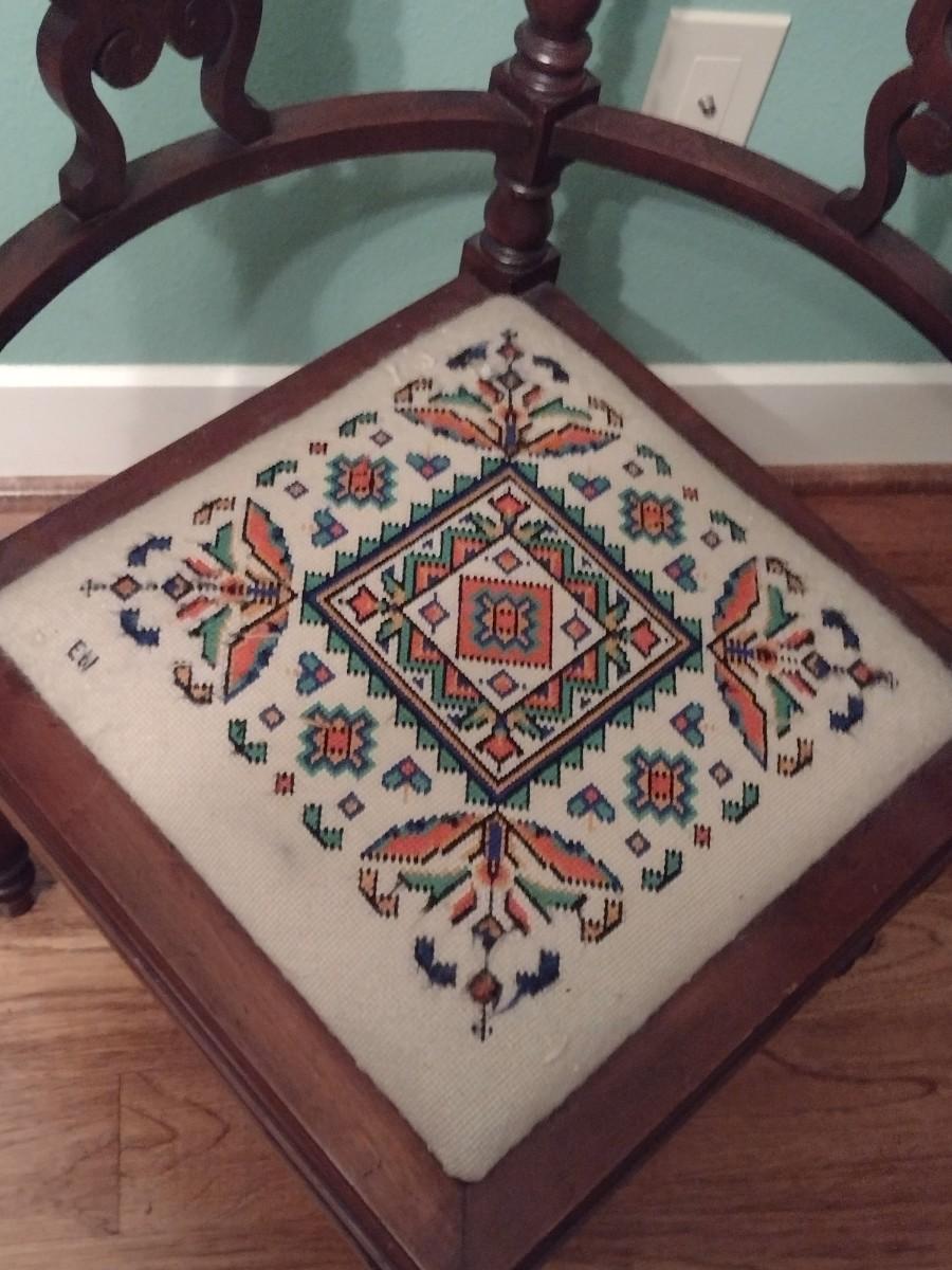 Gorgeous Vintage Solid Wood Framed Corner Chair with Needlework Cushioned Seat