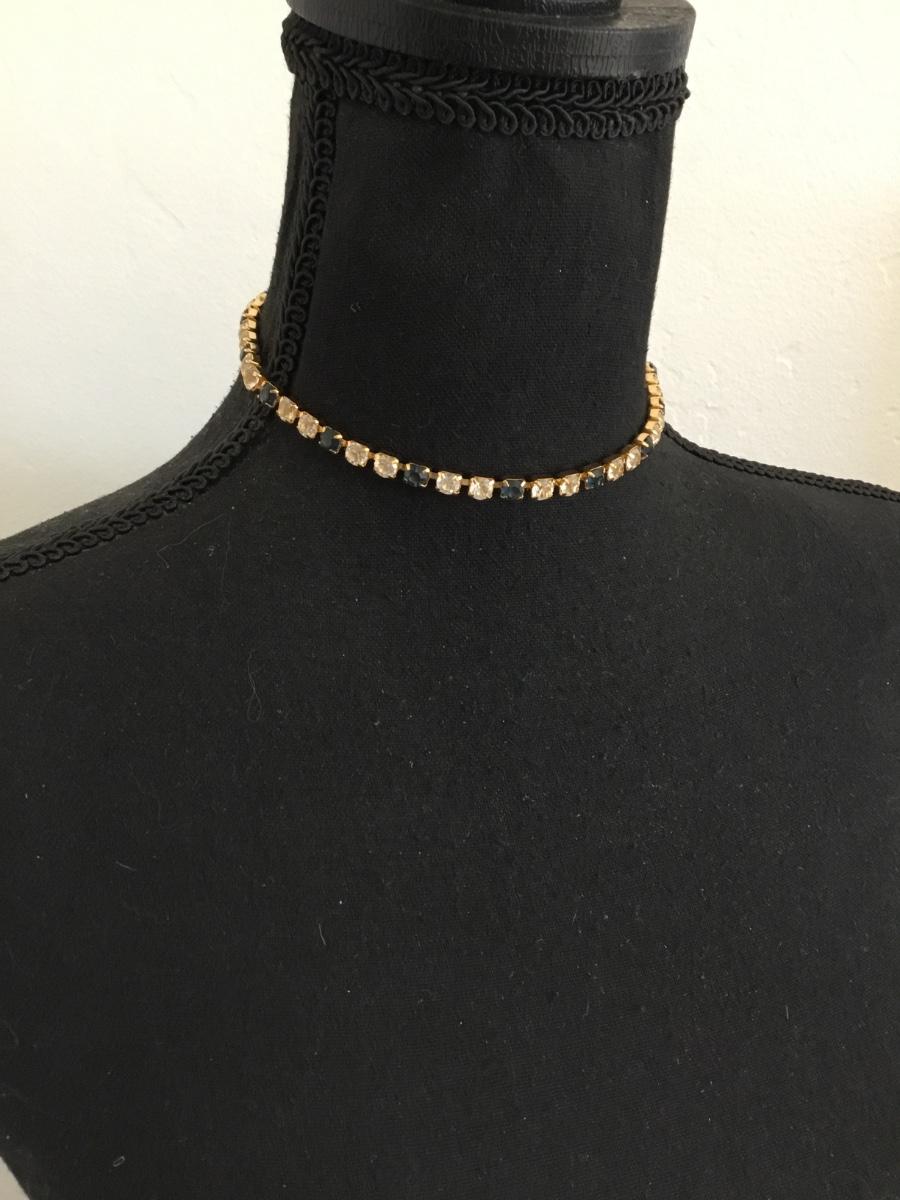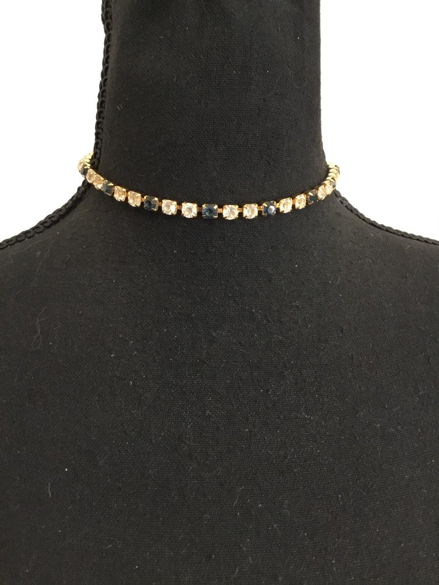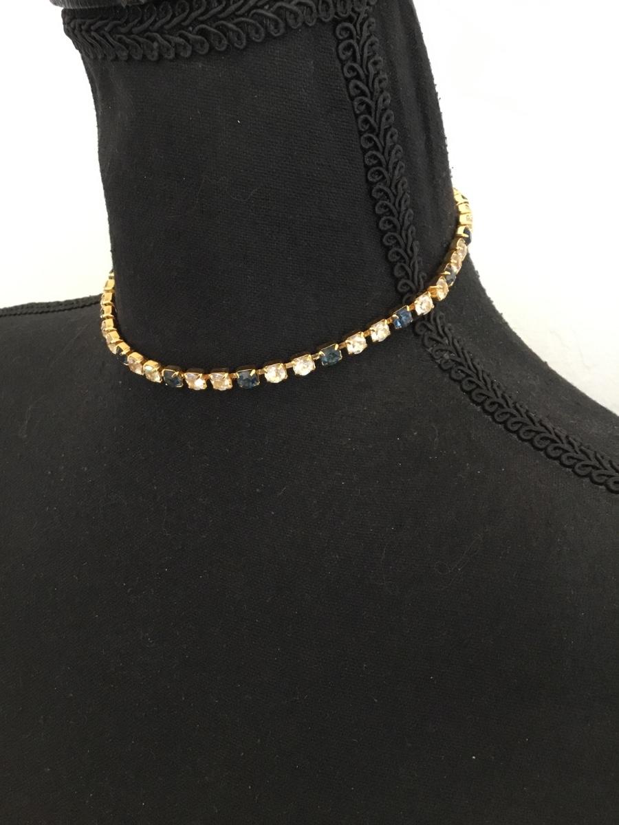 Gorgeous, vintage, Trifari, gold toned, rhinestone, choker, light blue and clear rhinestone crystal rhinestone excellent condition
