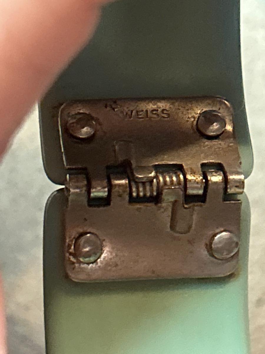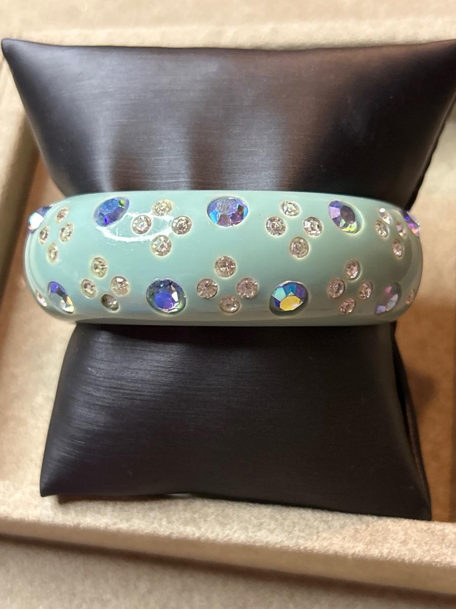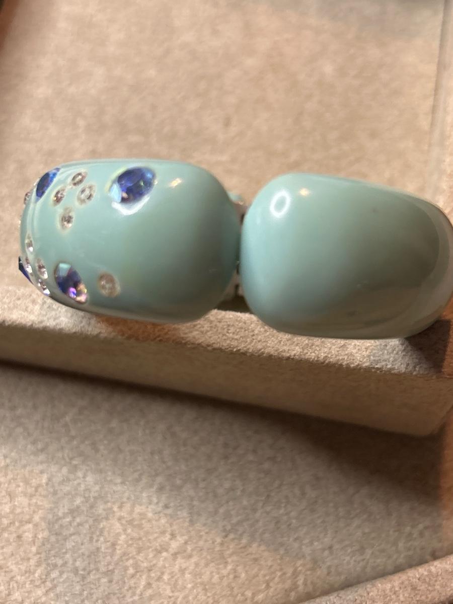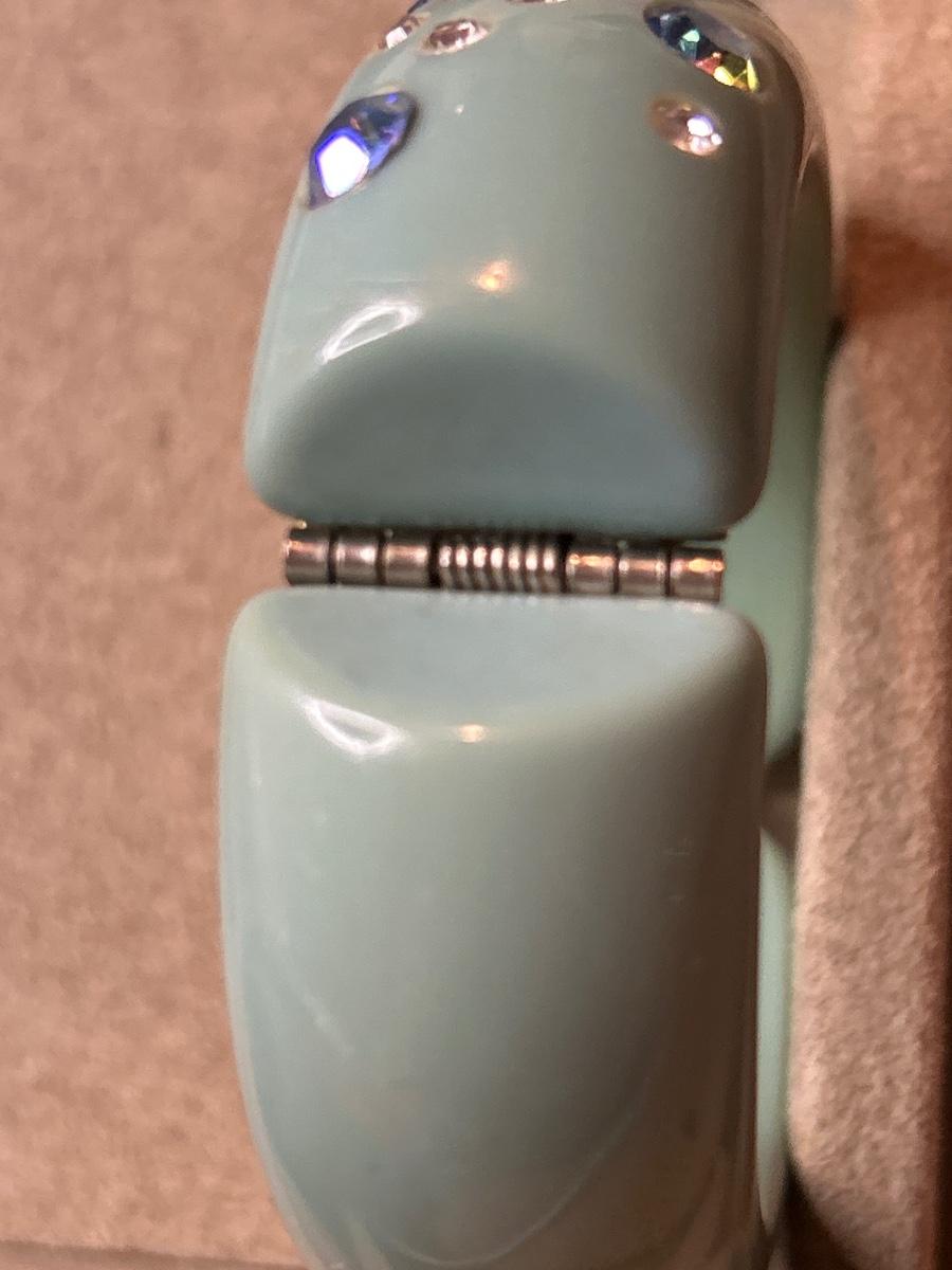 Lucite, blinged out, Tiffany blue rare clamper bracelet by Weiss. This thing is a showstopper!!!! From the 40’s or 50’s