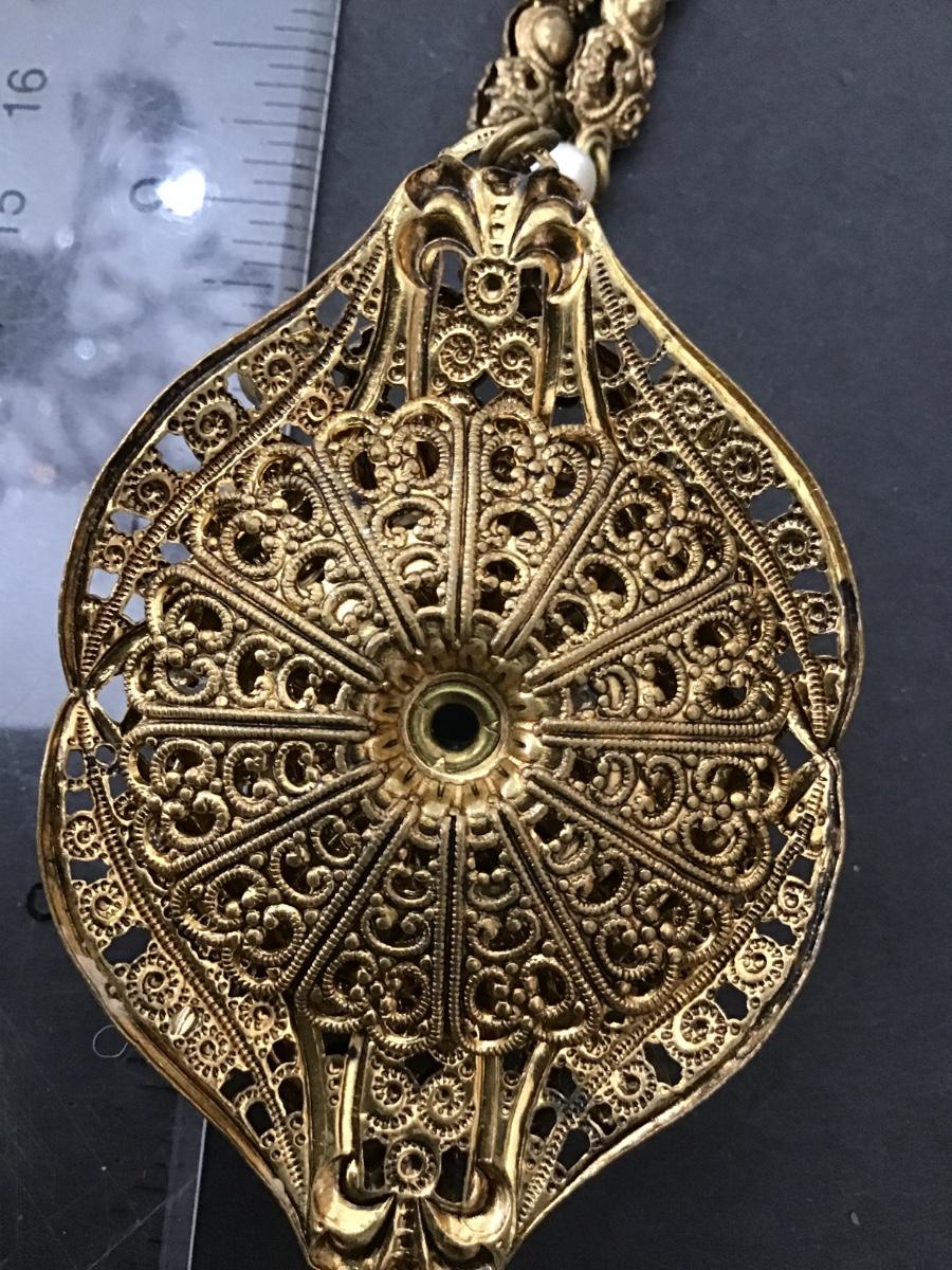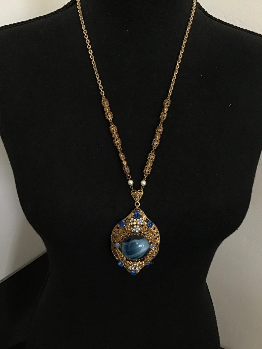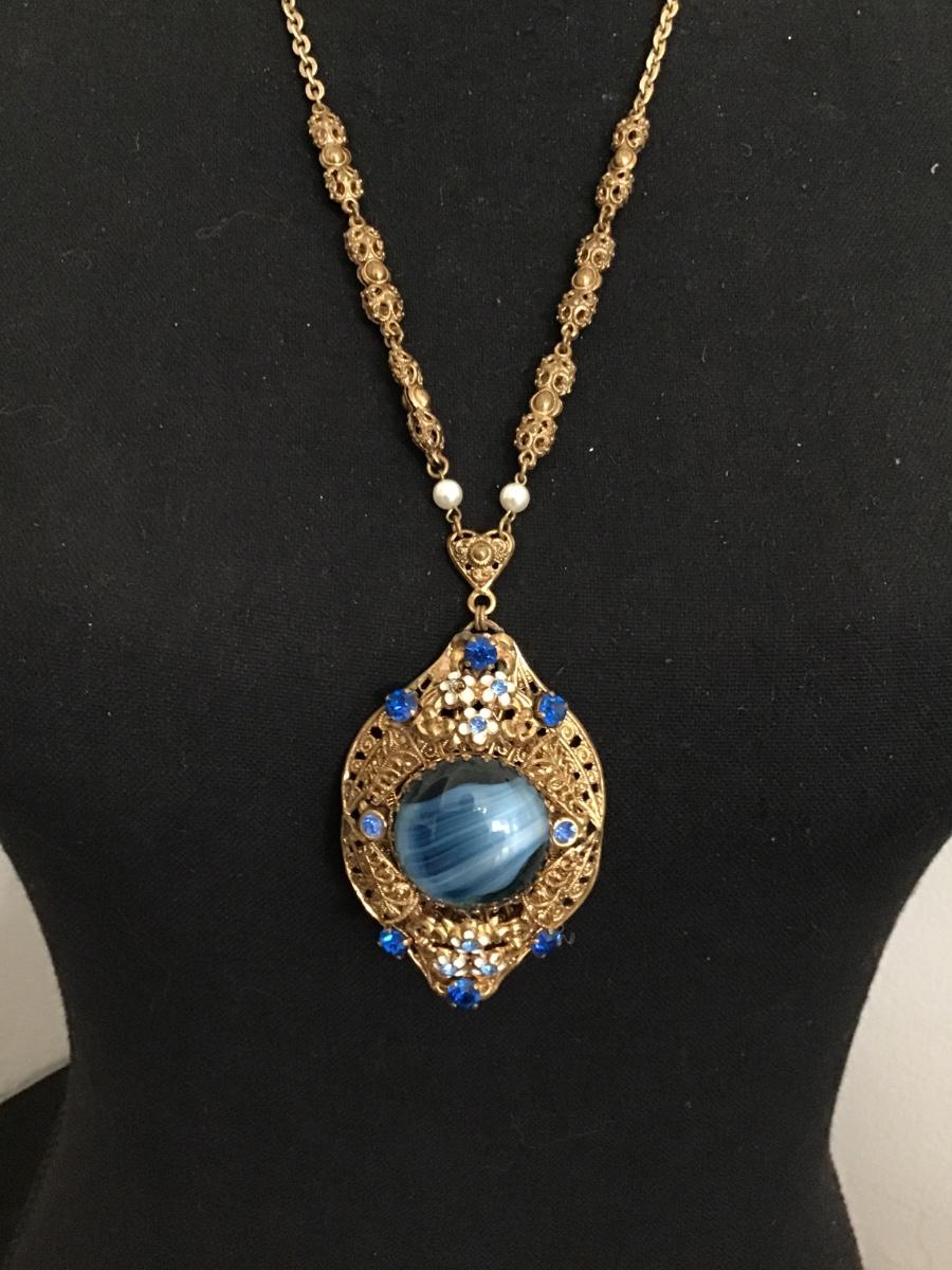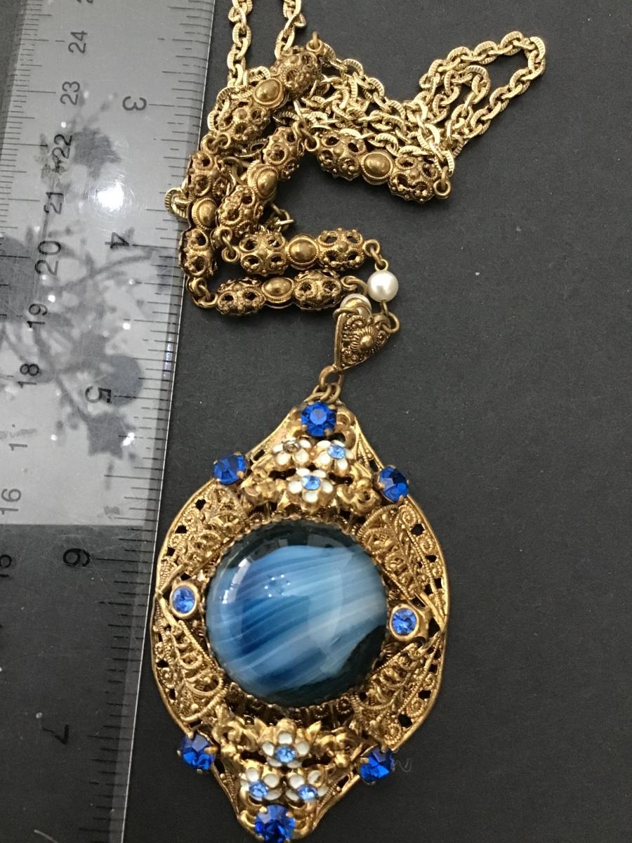 Gorgeous Vintage West Germany Signed Filagree Art Glass Stone with A/B
