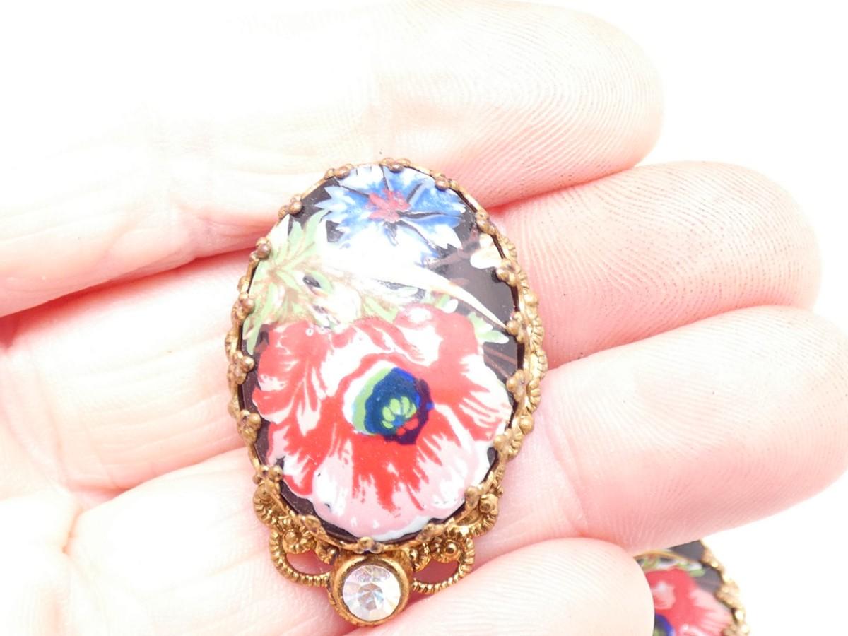 Gorgeous Filagree Hand Painted Porcelain Clip Earrings
