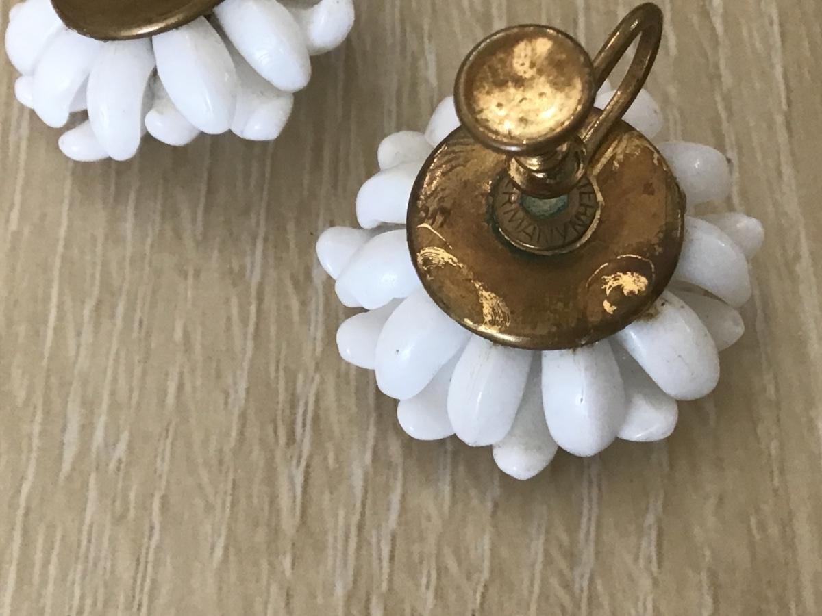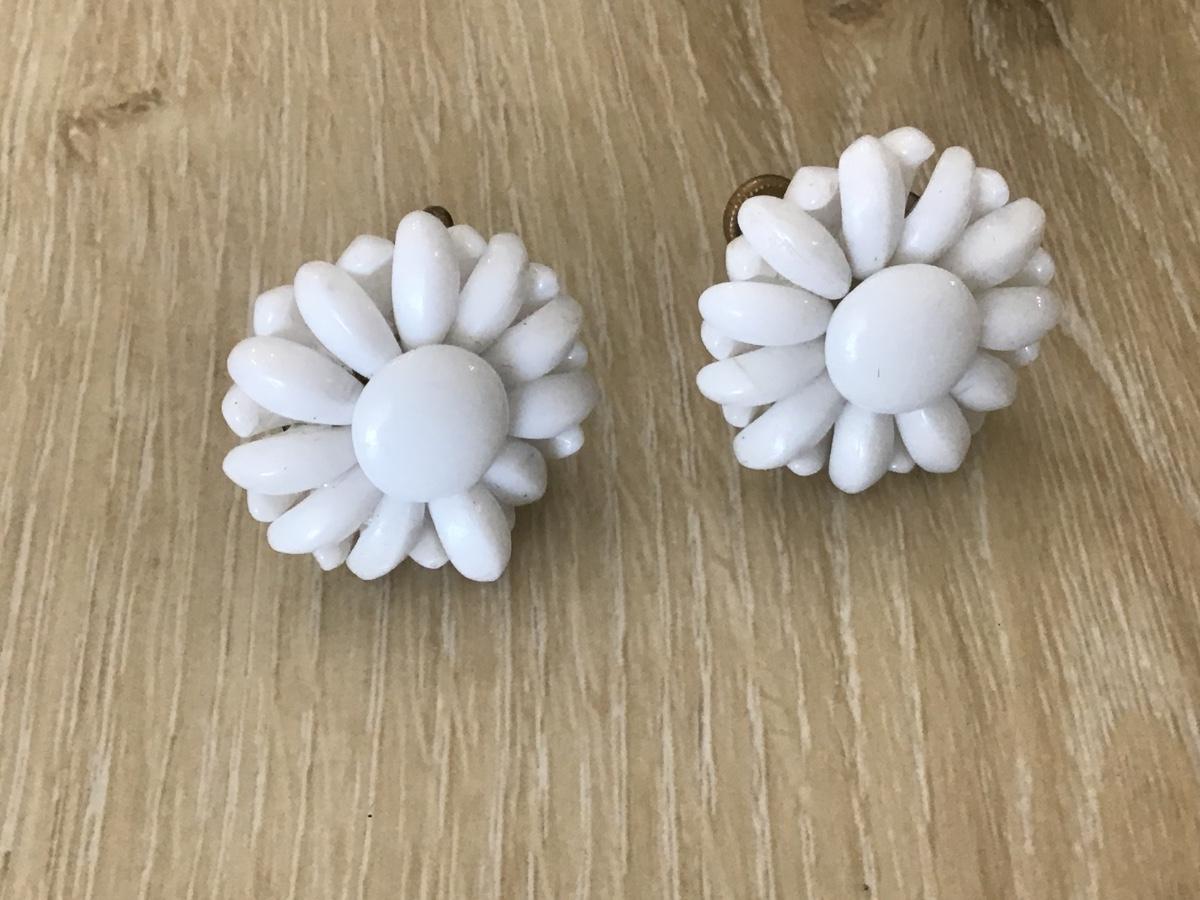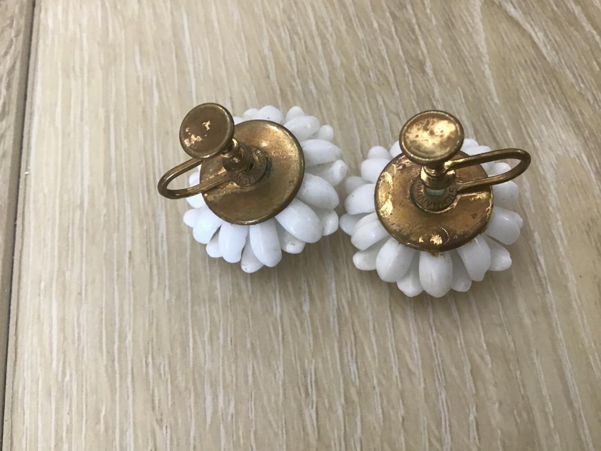 Gorgeous West Germany Milk Glass Daisy Earrings
