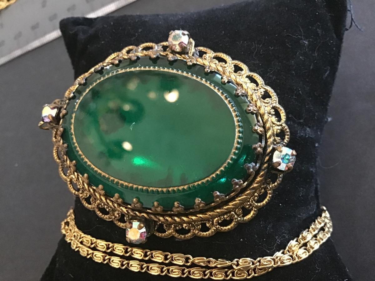 Gorgeous West Germany Pendant Green Glass Or Stone