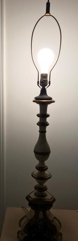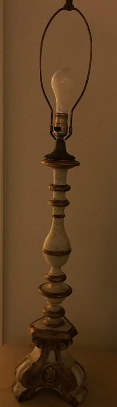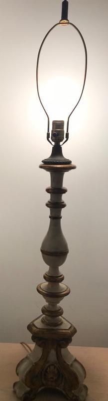Gorgeous table veneered in off white color and a twist of gilt. Material : Robust wood. Measurement approximate: 38 x 8 In. Shipping cost: $ 65 excluding Hawaii, Alaska and California