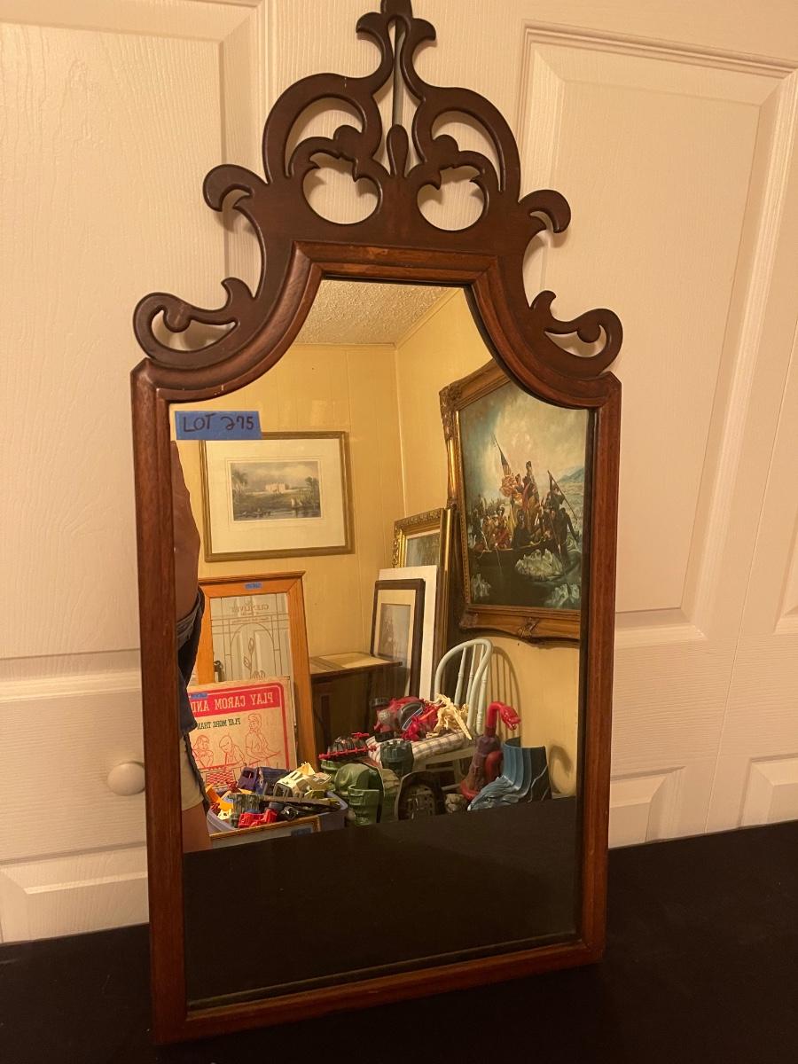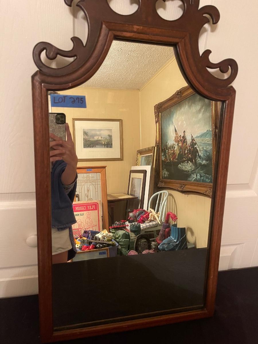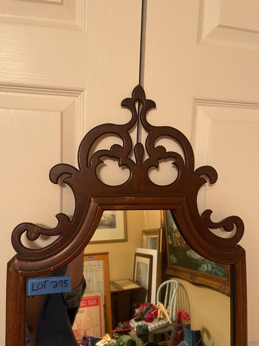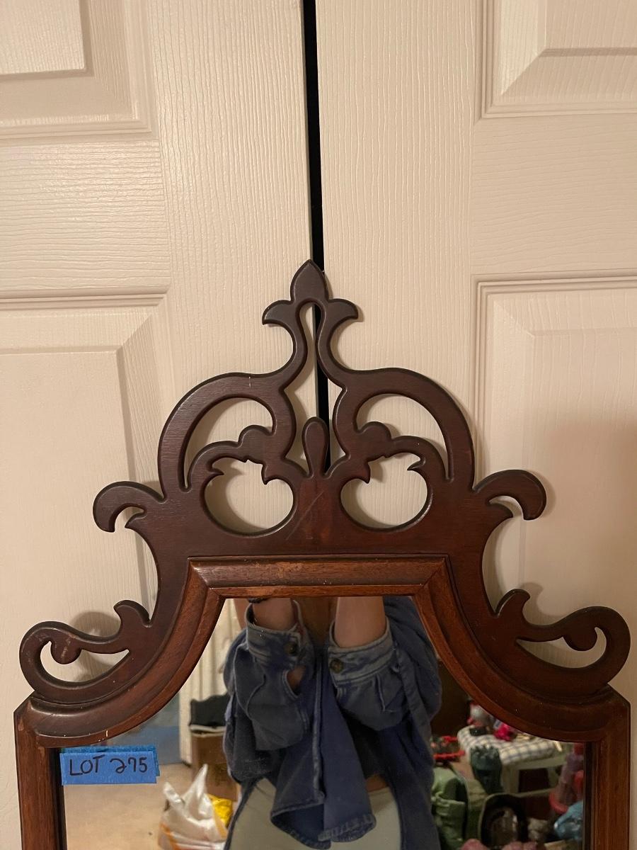 Gorgeous wood antique mirror. (36"T x 18"W)