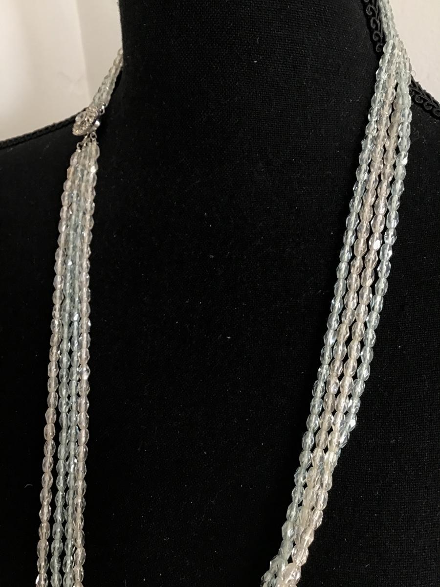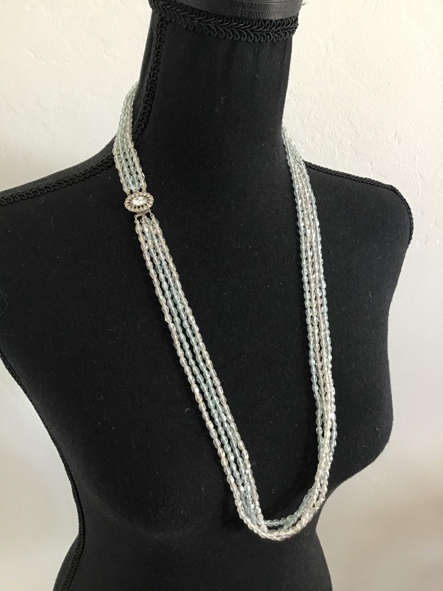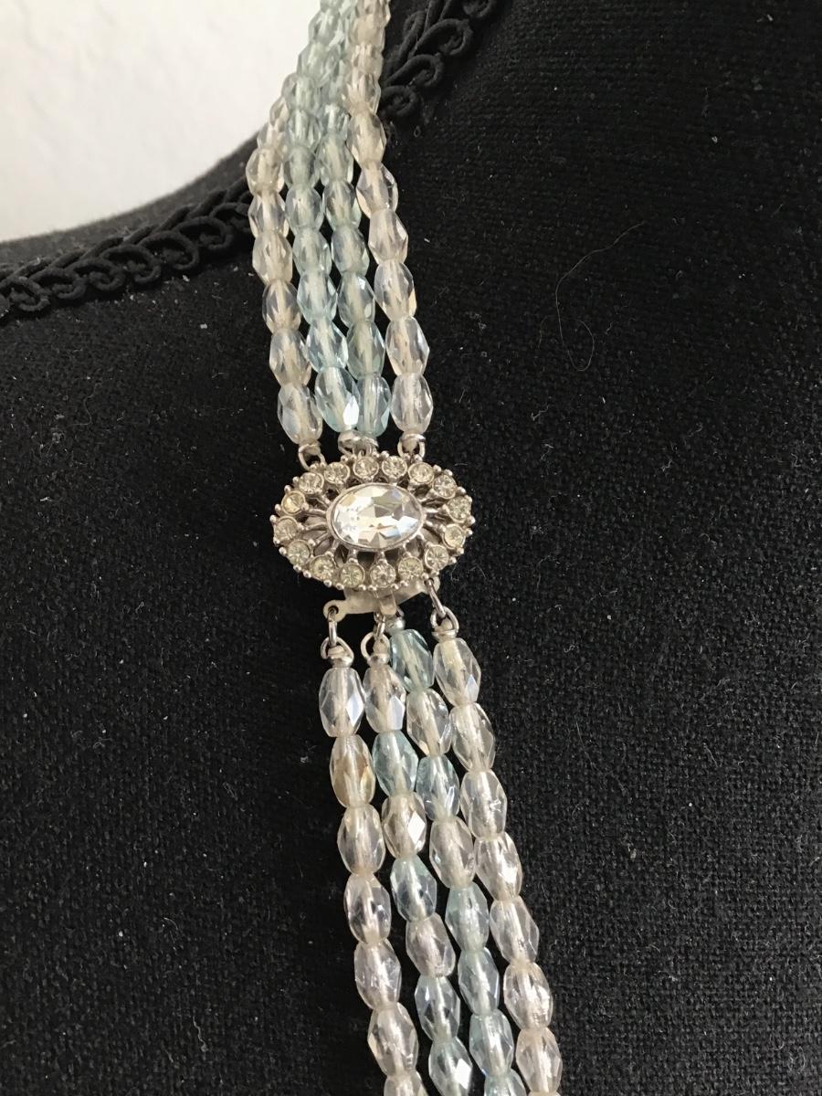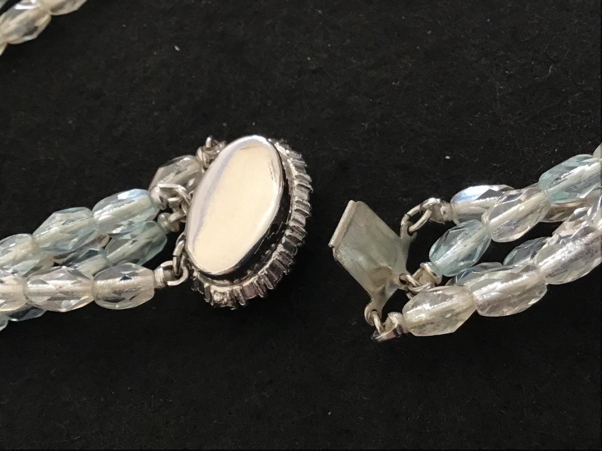Gorgeous zBlue and Clear Glass Beaded Necklace Rhinestone clasp