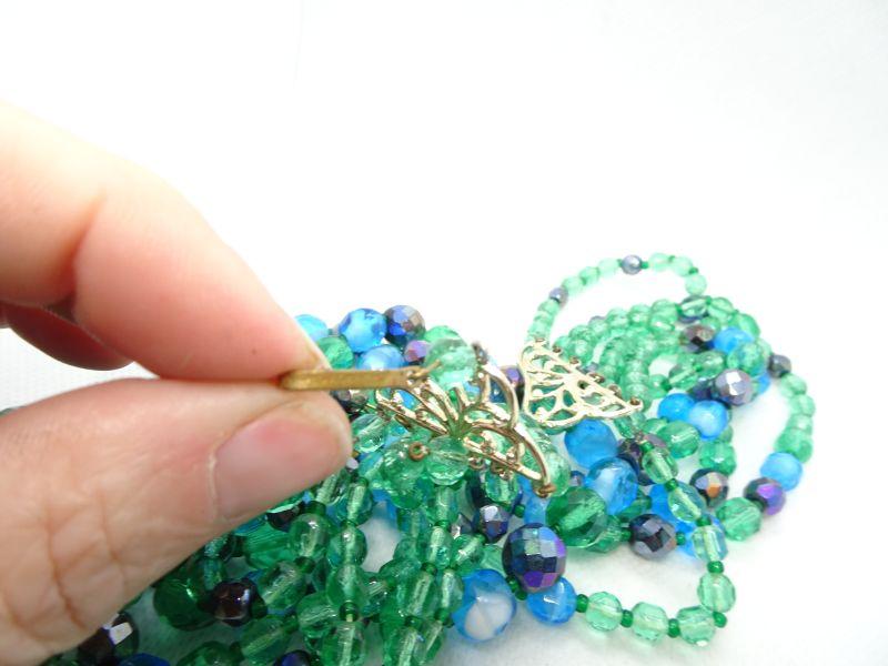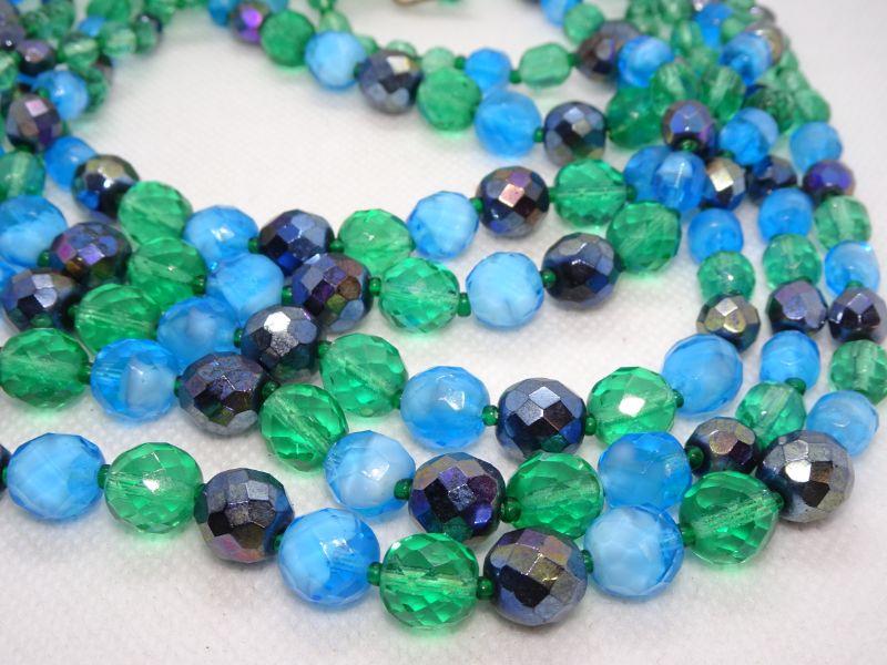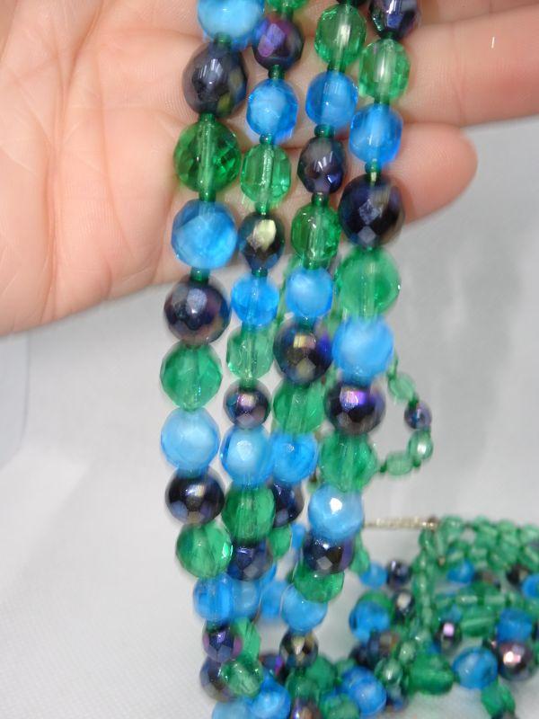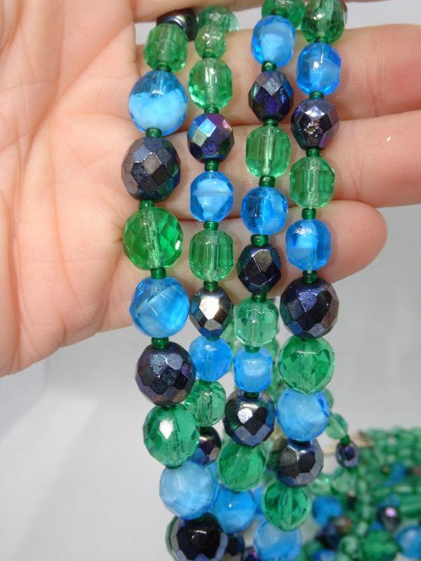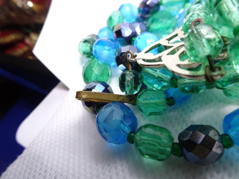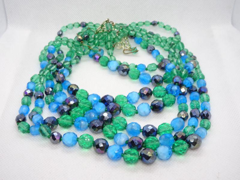 GORGEROUS West German Signed Glass Beaded Necklace - Graduated 5 Strand