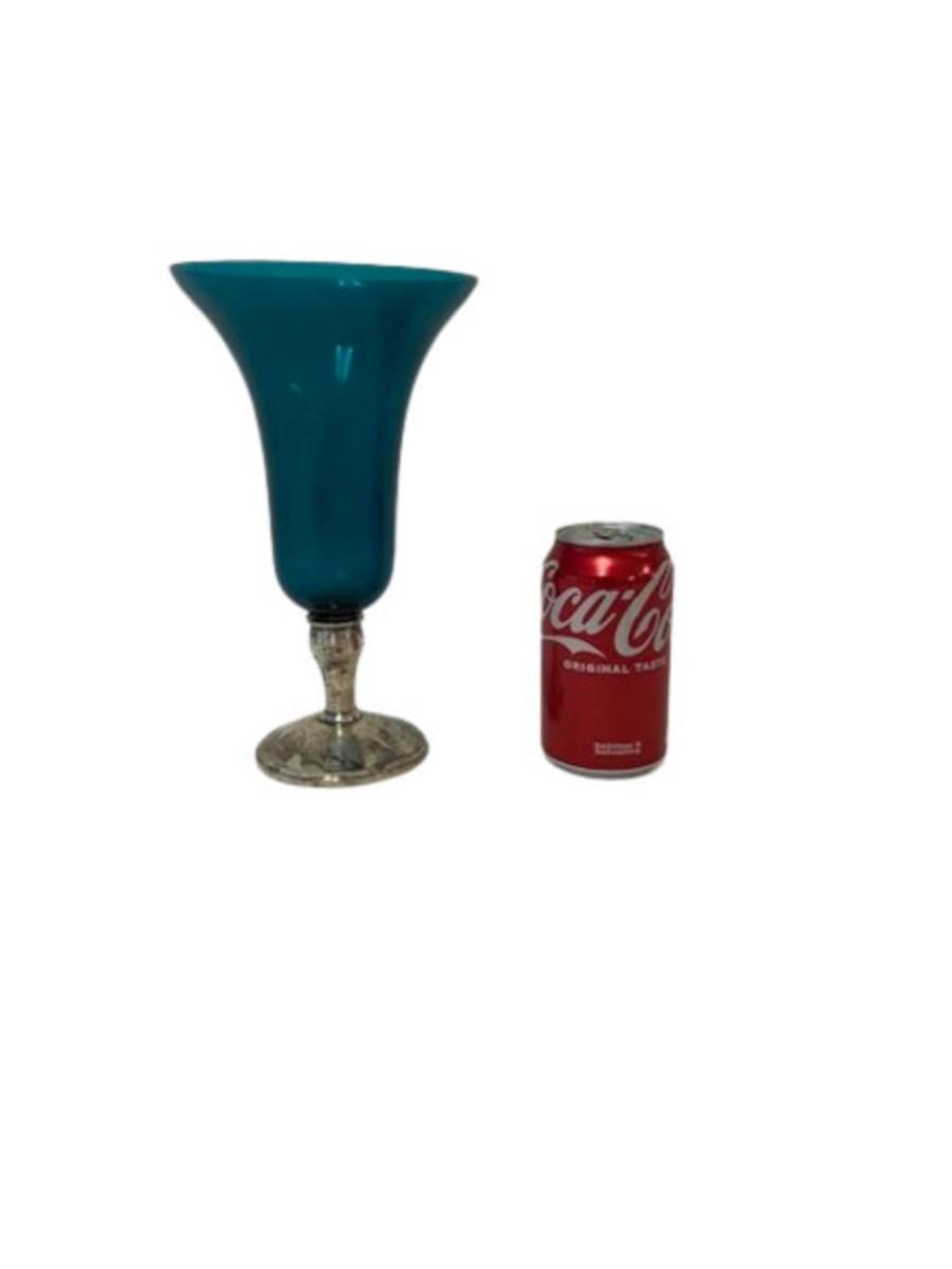 Gorham Blue Glass Vase with Weighted Sterling Base