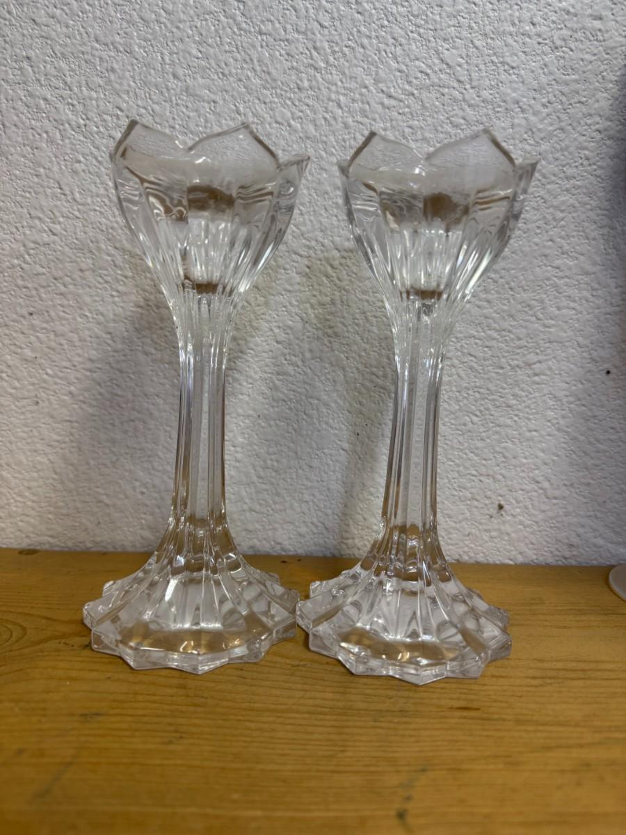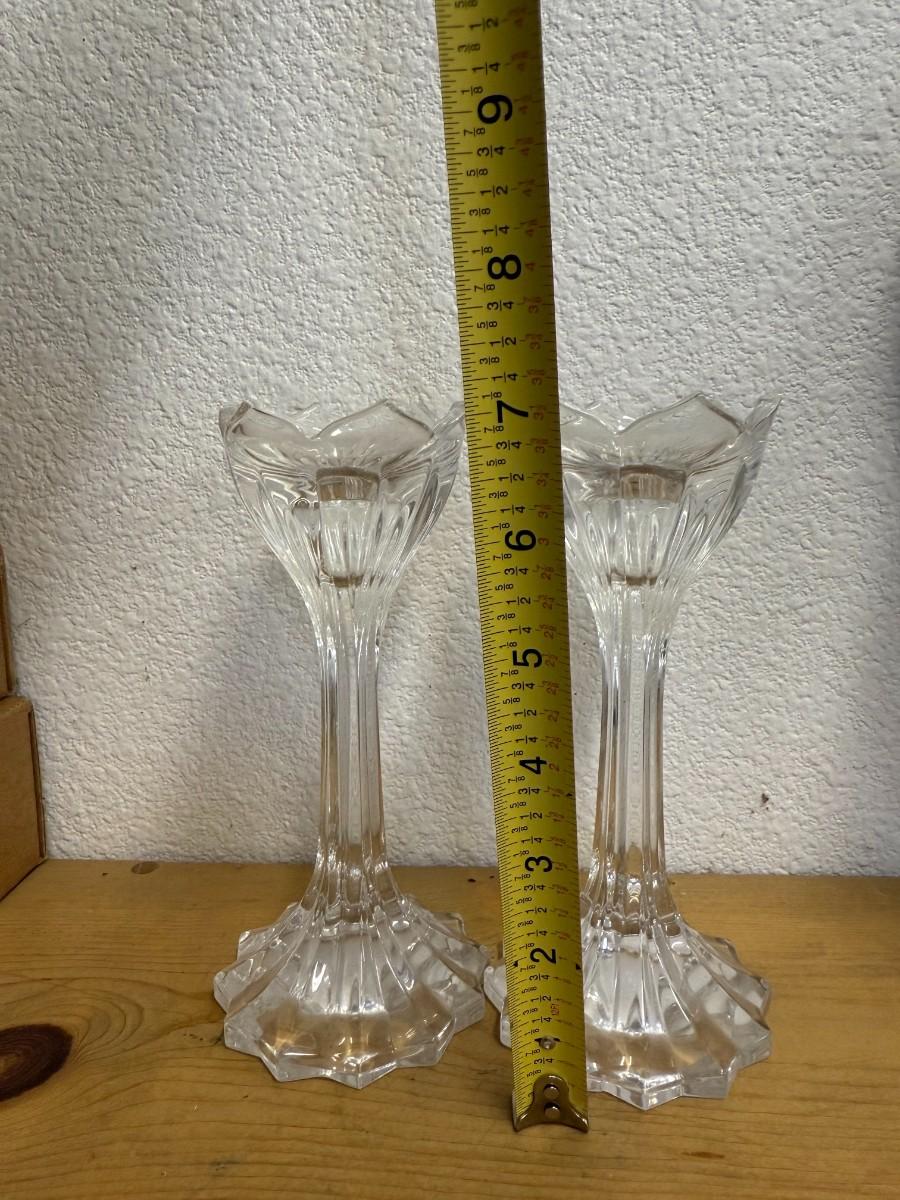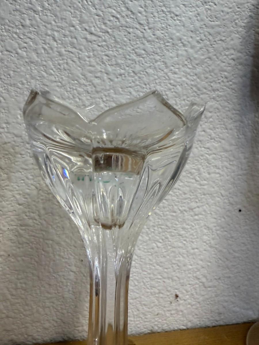 Gorham Crystal Candlestick Set Vintage Lotus Flower Shaped Glass Candle Holder Pair Two Candlesticks Table Decoration