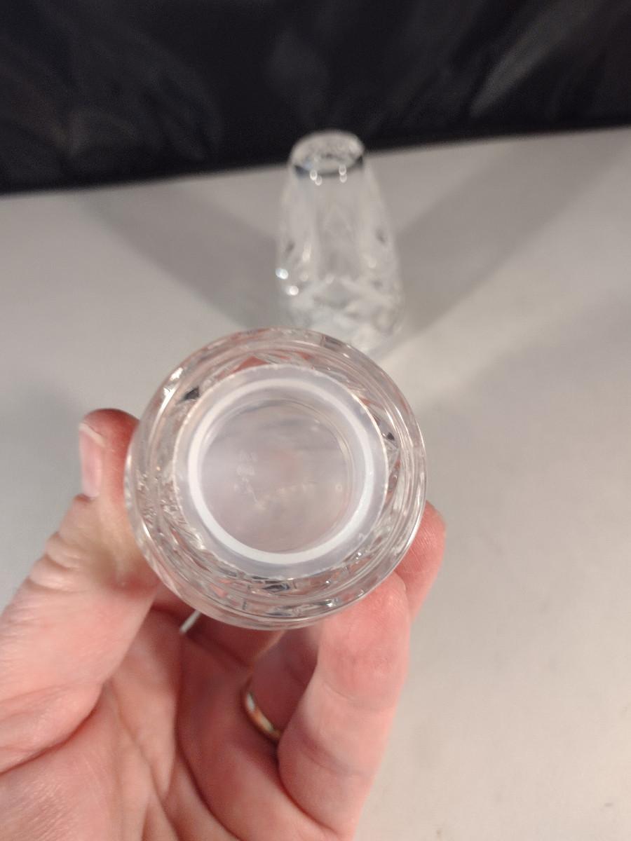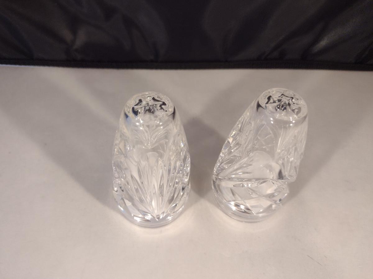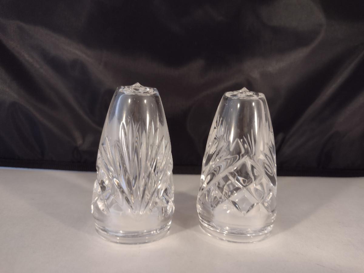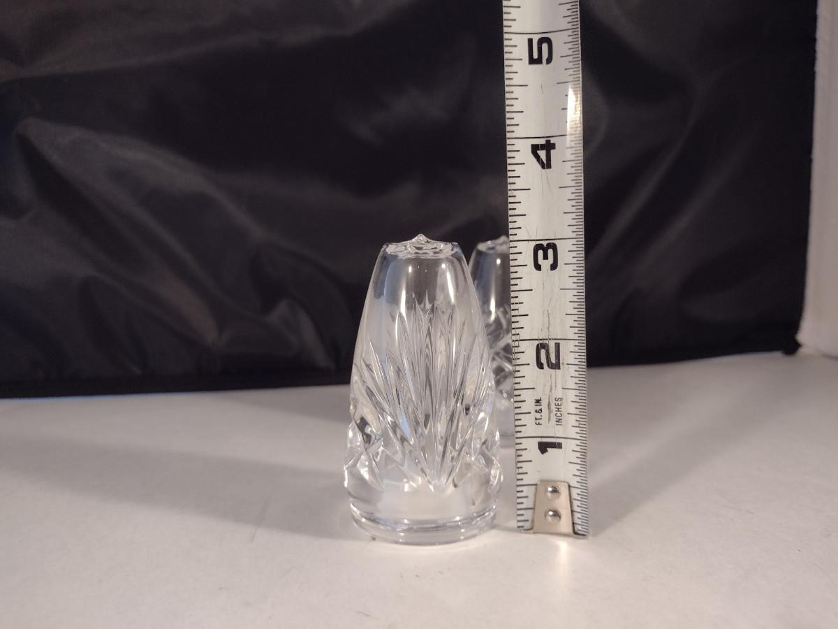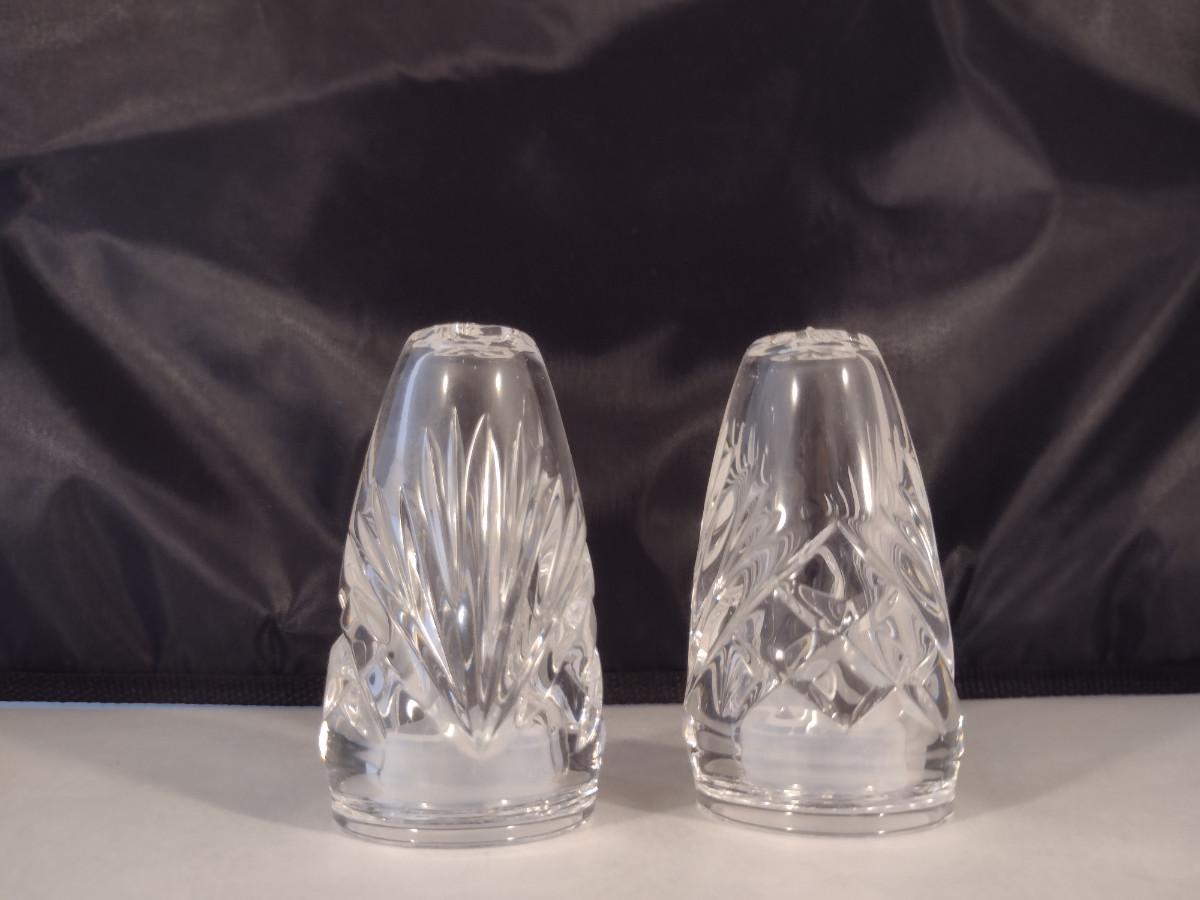 Gorham Crystal Salt and Pepper Shakers- Cherrywood Pattern- Three Pairs. Two pairs with metal lids.