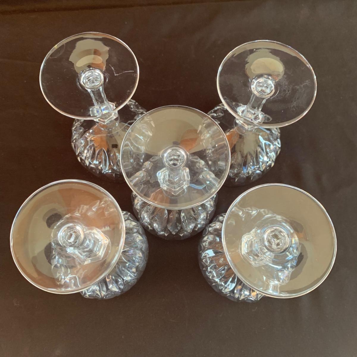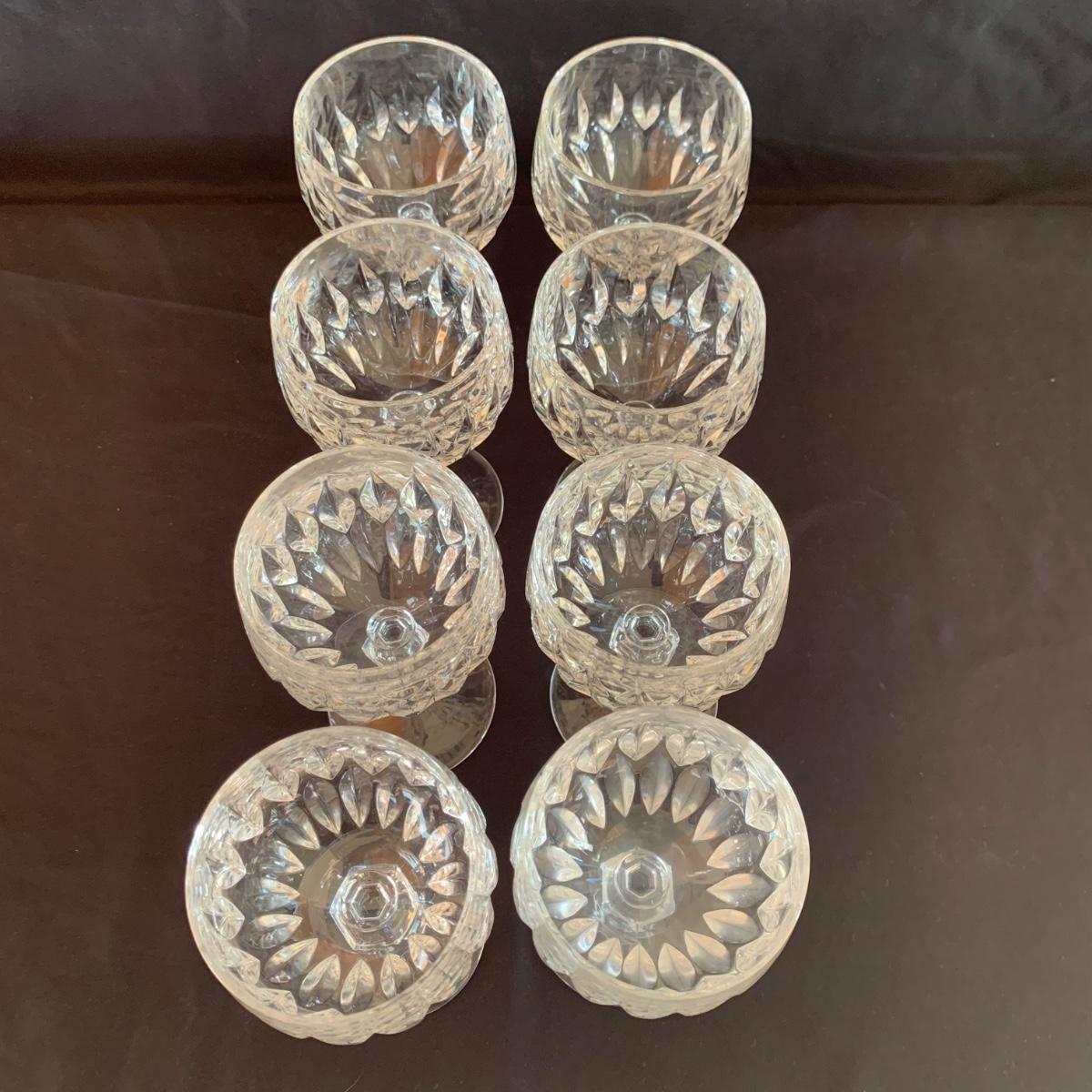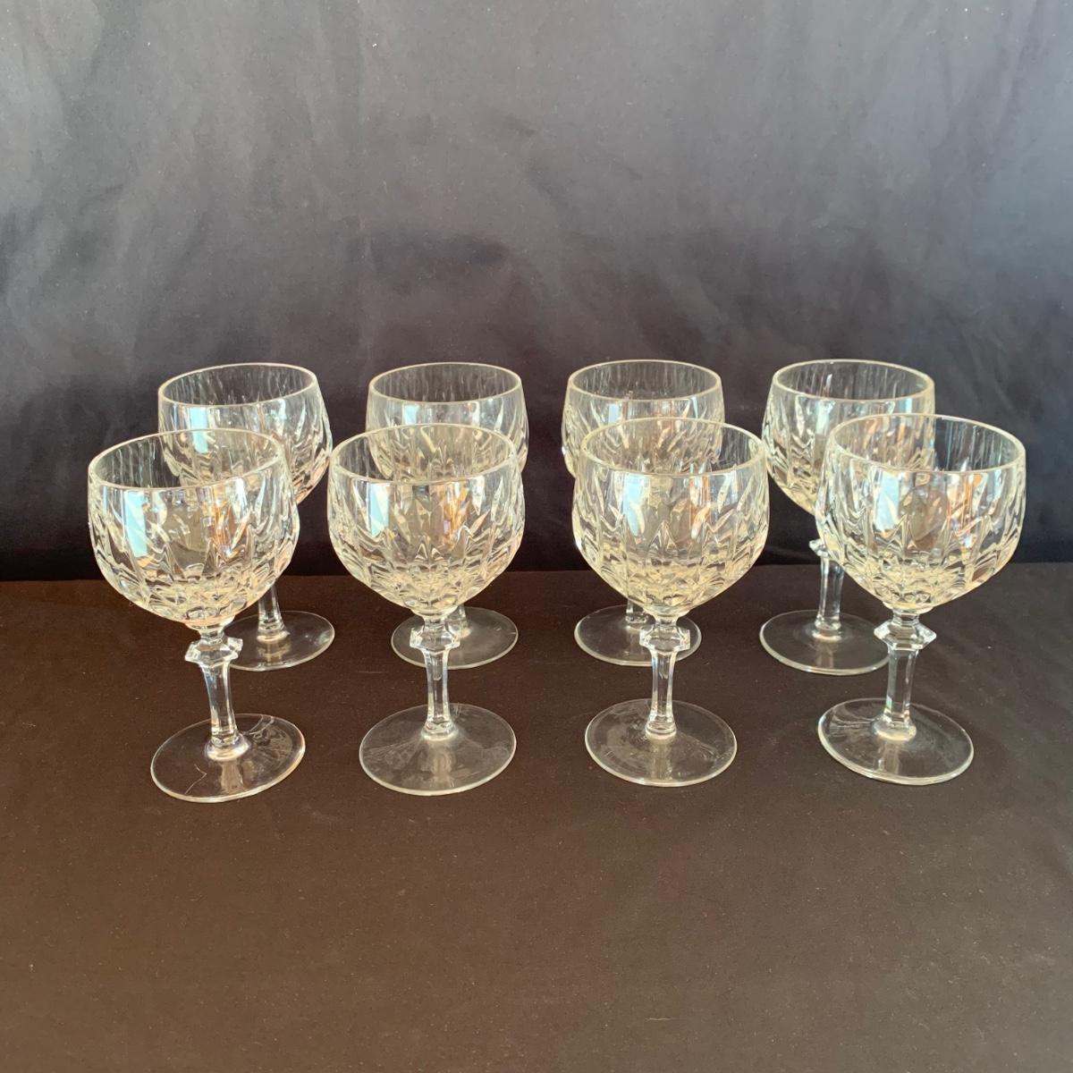 Set of eight Gorham crystal stemmed glasses. Glasses are in very good condition and just have some water stains that will be easily cleanable. Glasses are 5.5” tall. Three of the glasses are marked “Gorham” on the bottom. The other five are not marked, but are identical to the marked ones.