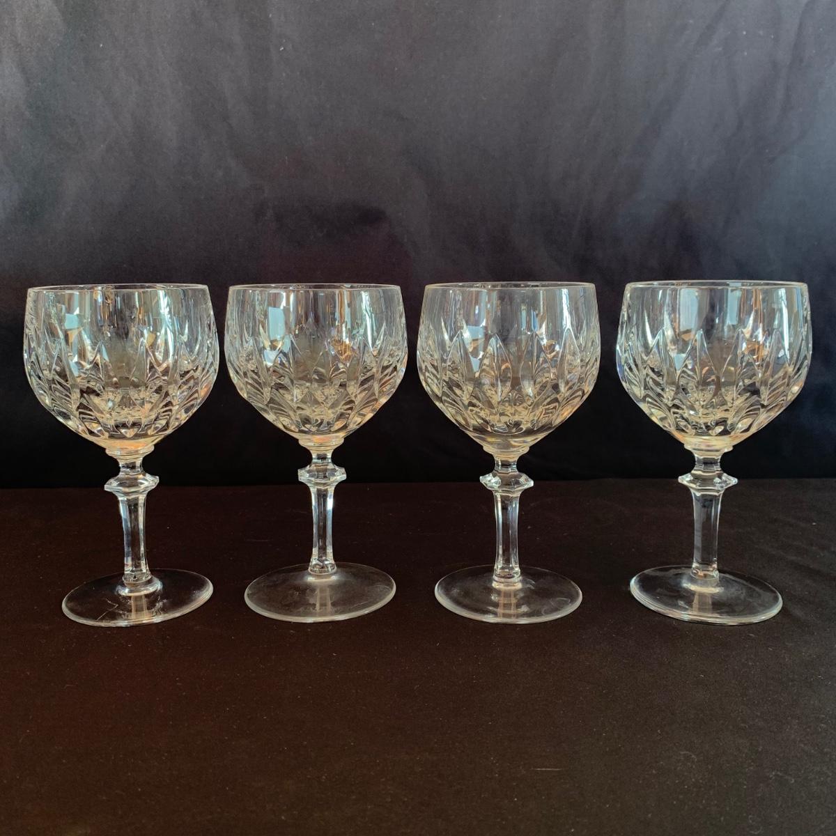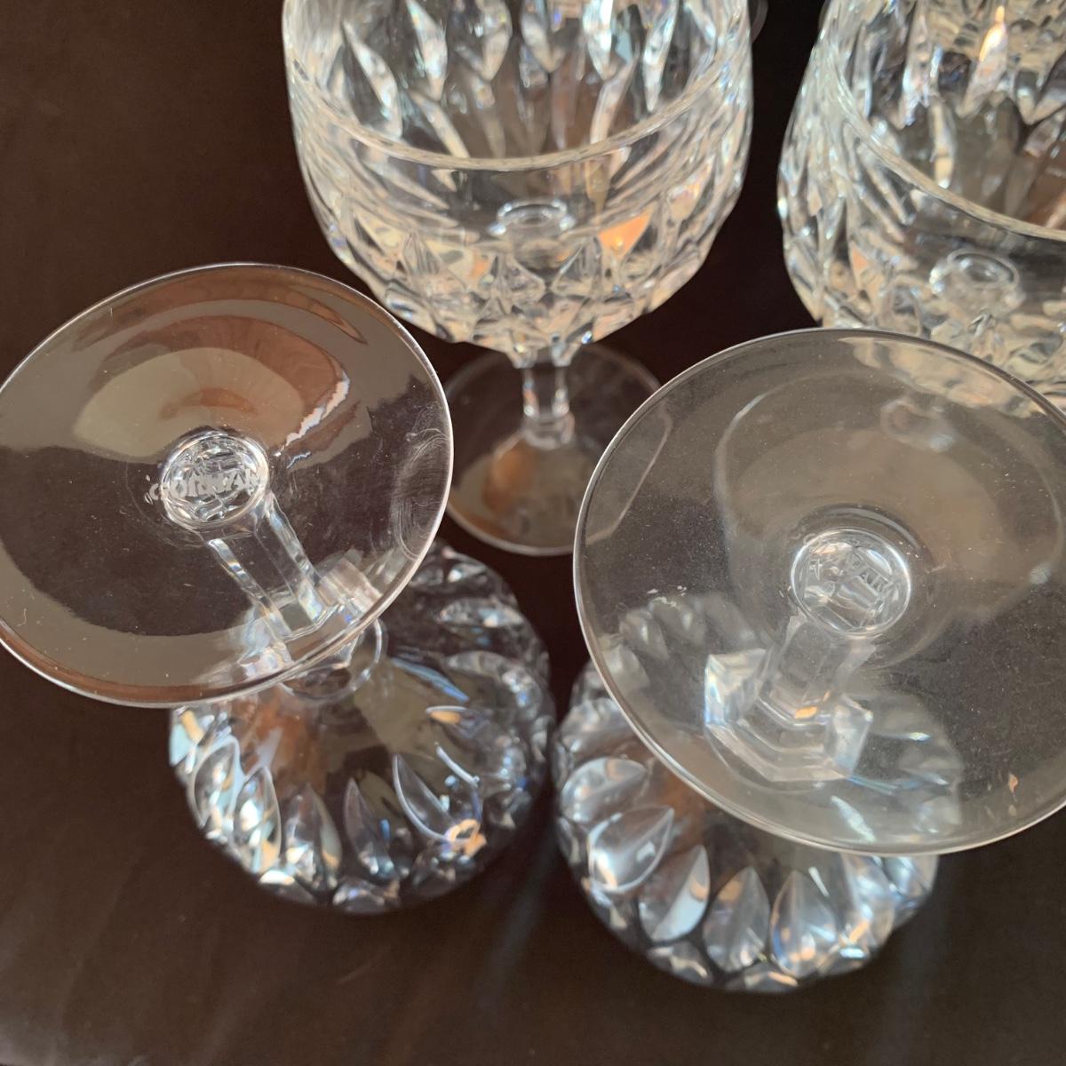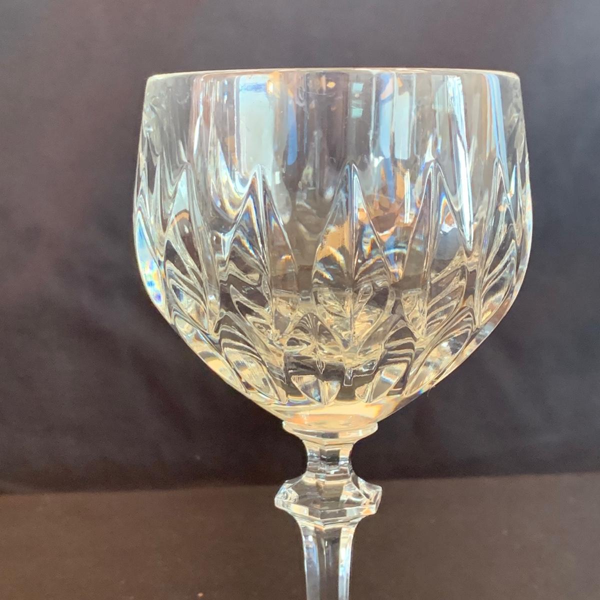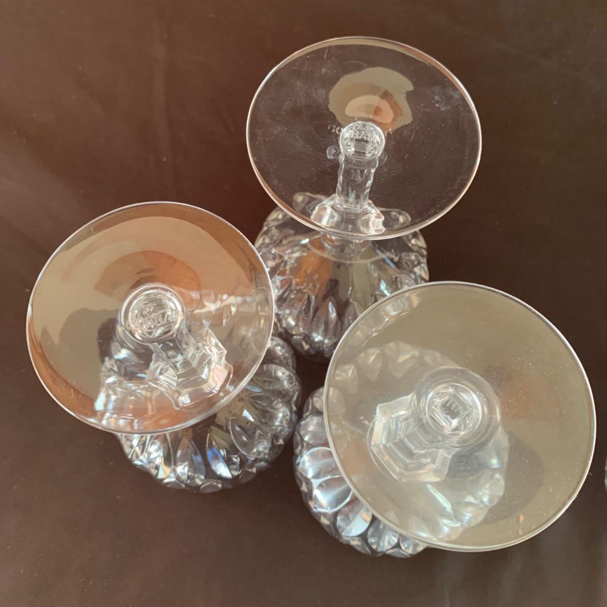 Set of eight Gorham crystal stemmed glasses. Glasses are in very good condition and just have some water stains that will be easily cleanable. Glasses are 5.5” tall. Three of the glasses are marked “Gorham” on the bottom. The other five are not marked, but are identical to the marked ones.