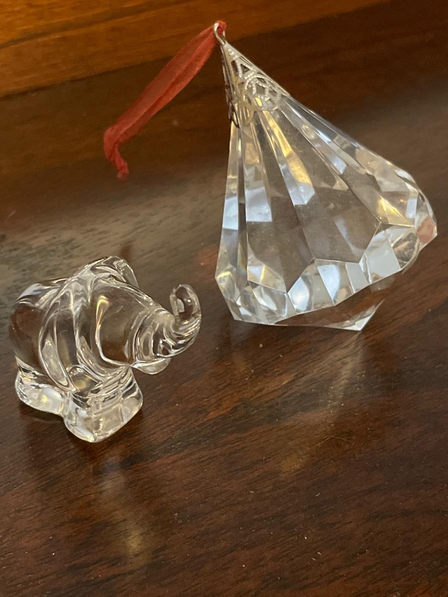 Glass elephant and ornament