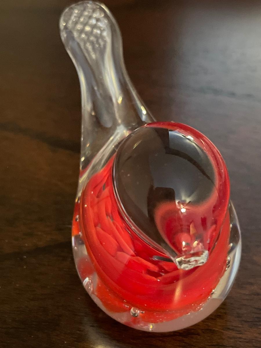 Bird with red inside has some damage to his beak