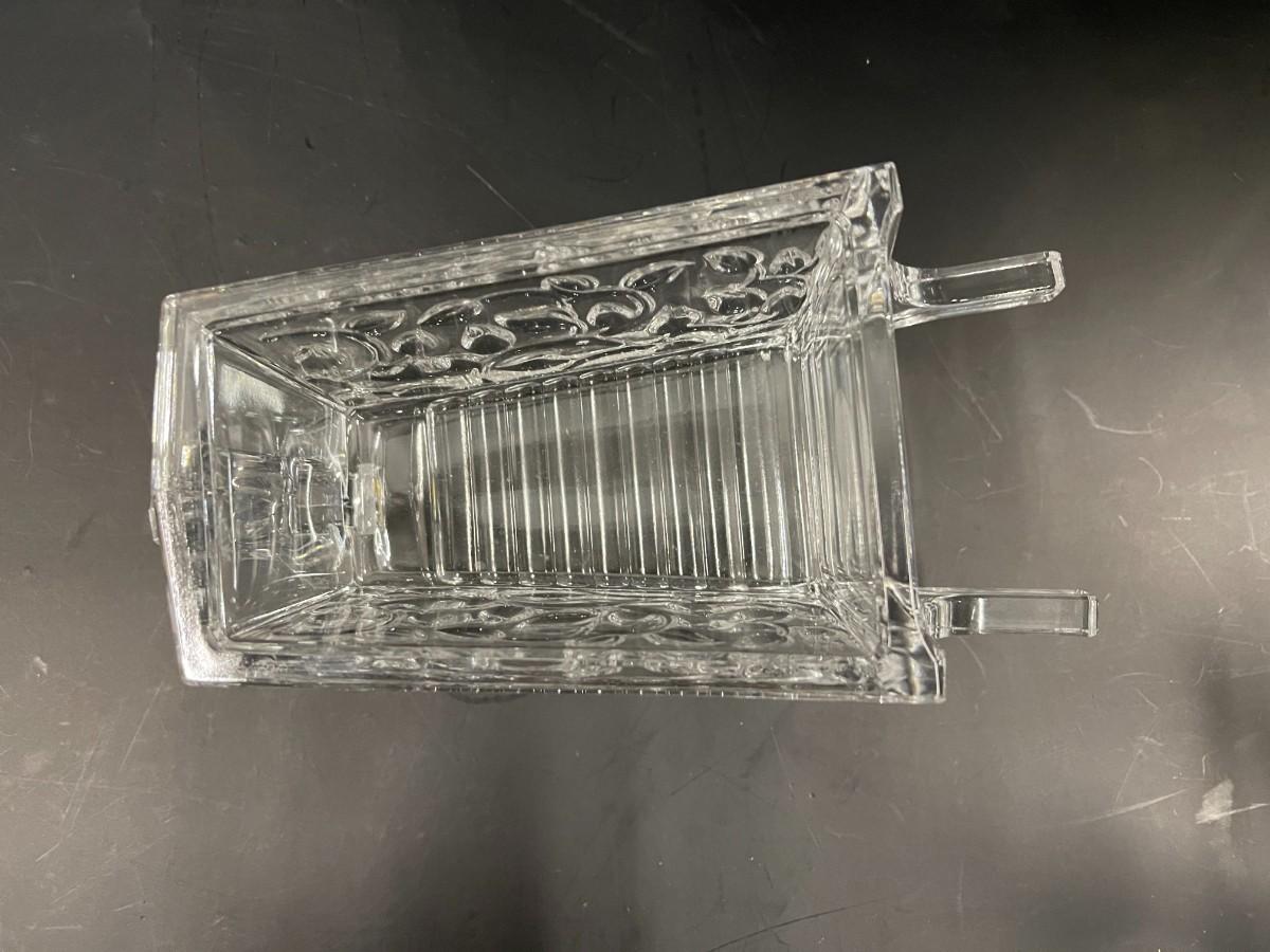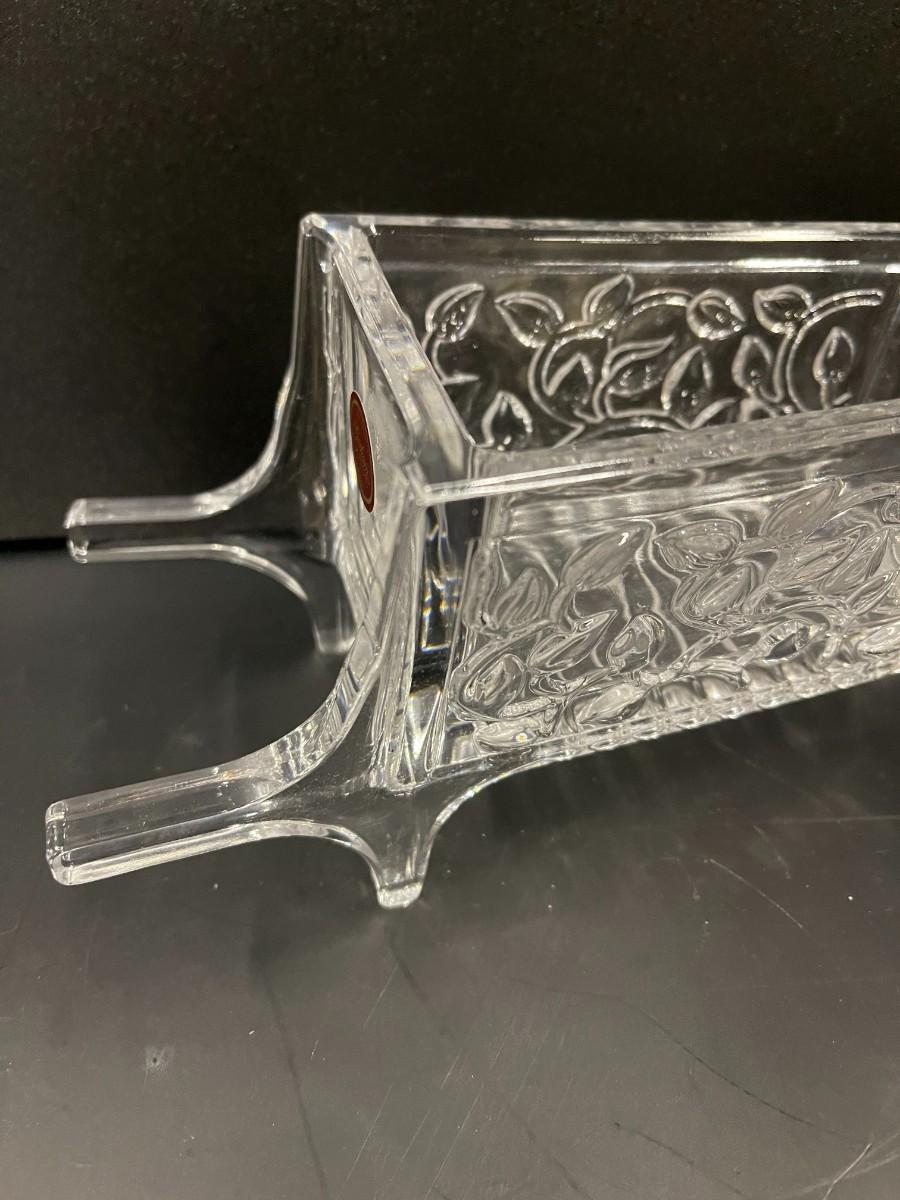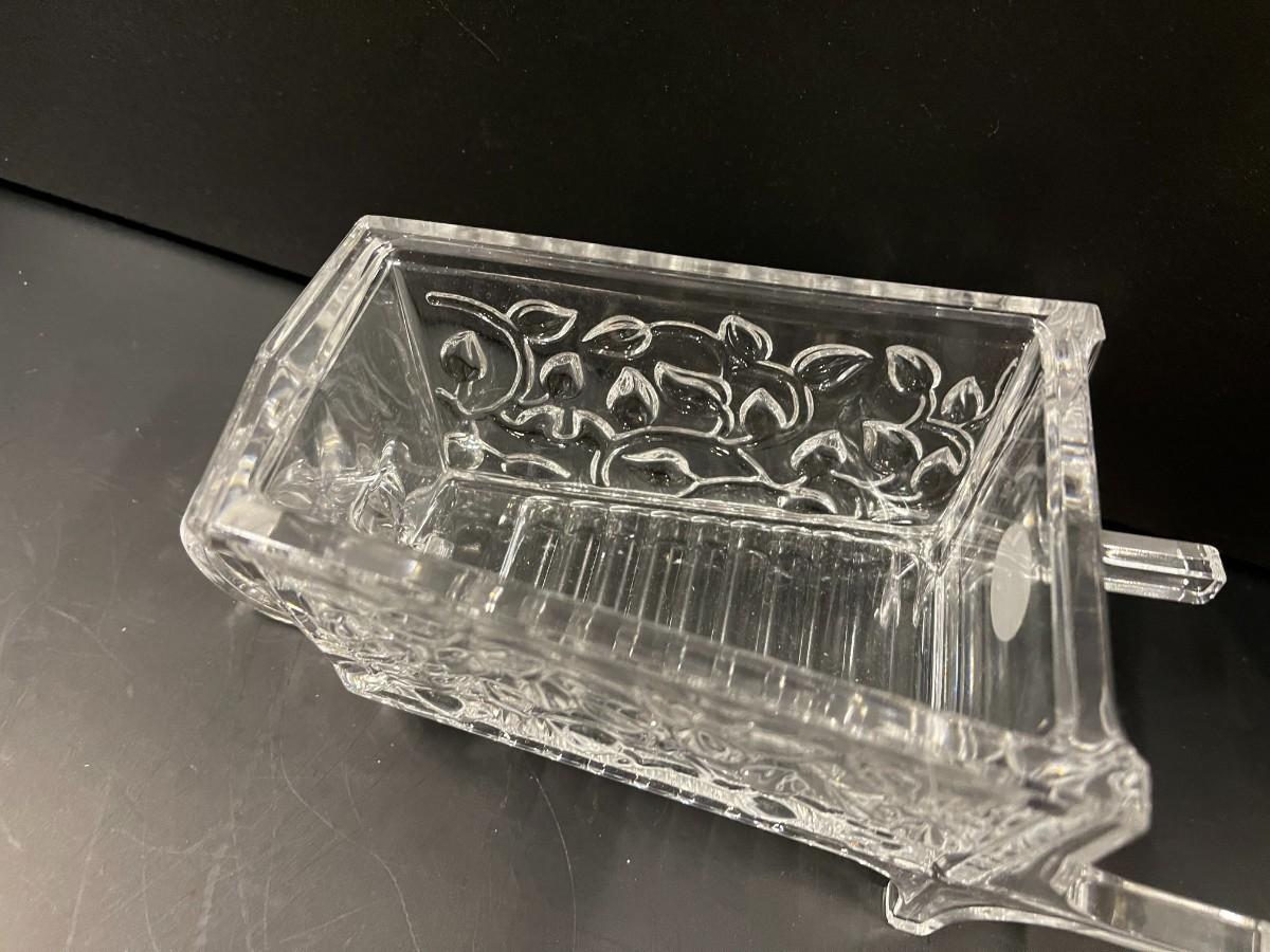 Gorham crystal wheelbarrow candy dish, in like new condition. No chips, cracks or scratches. 8" long x 4" tall. # 1209