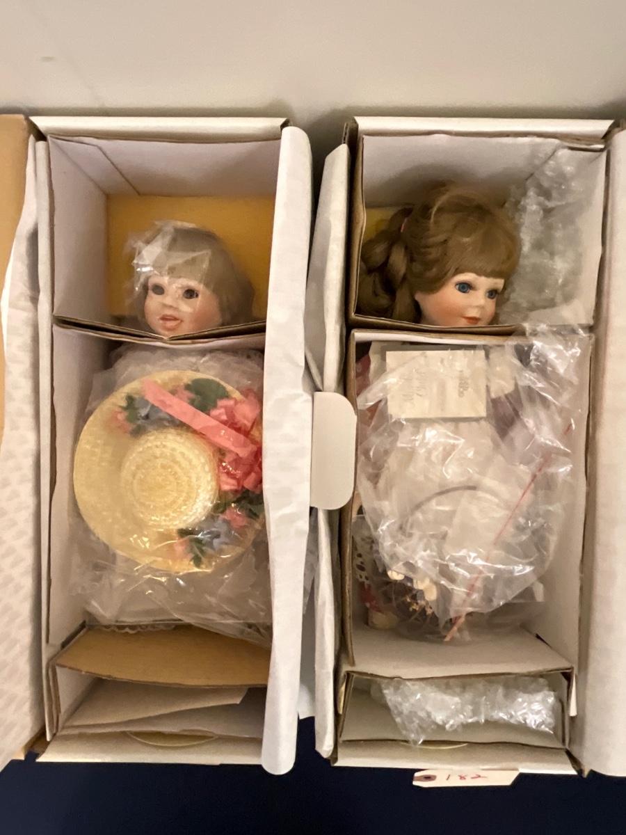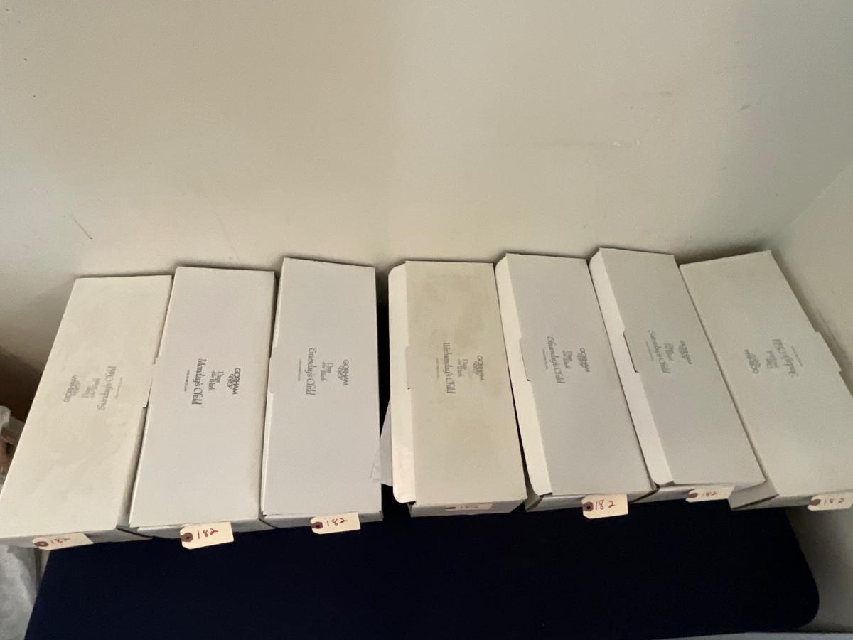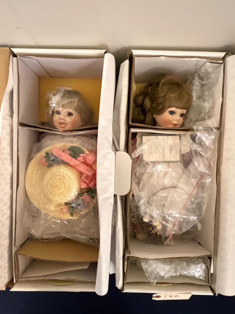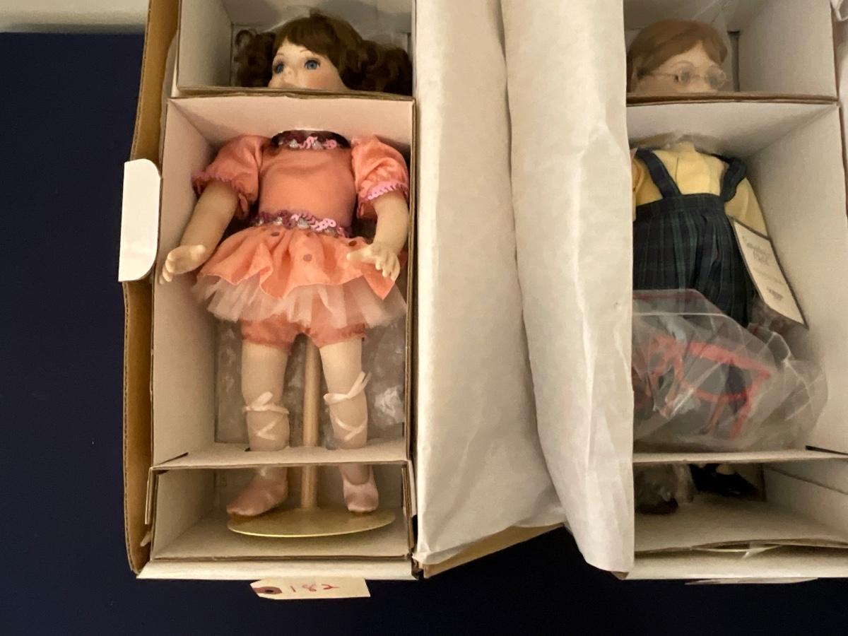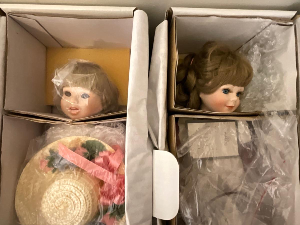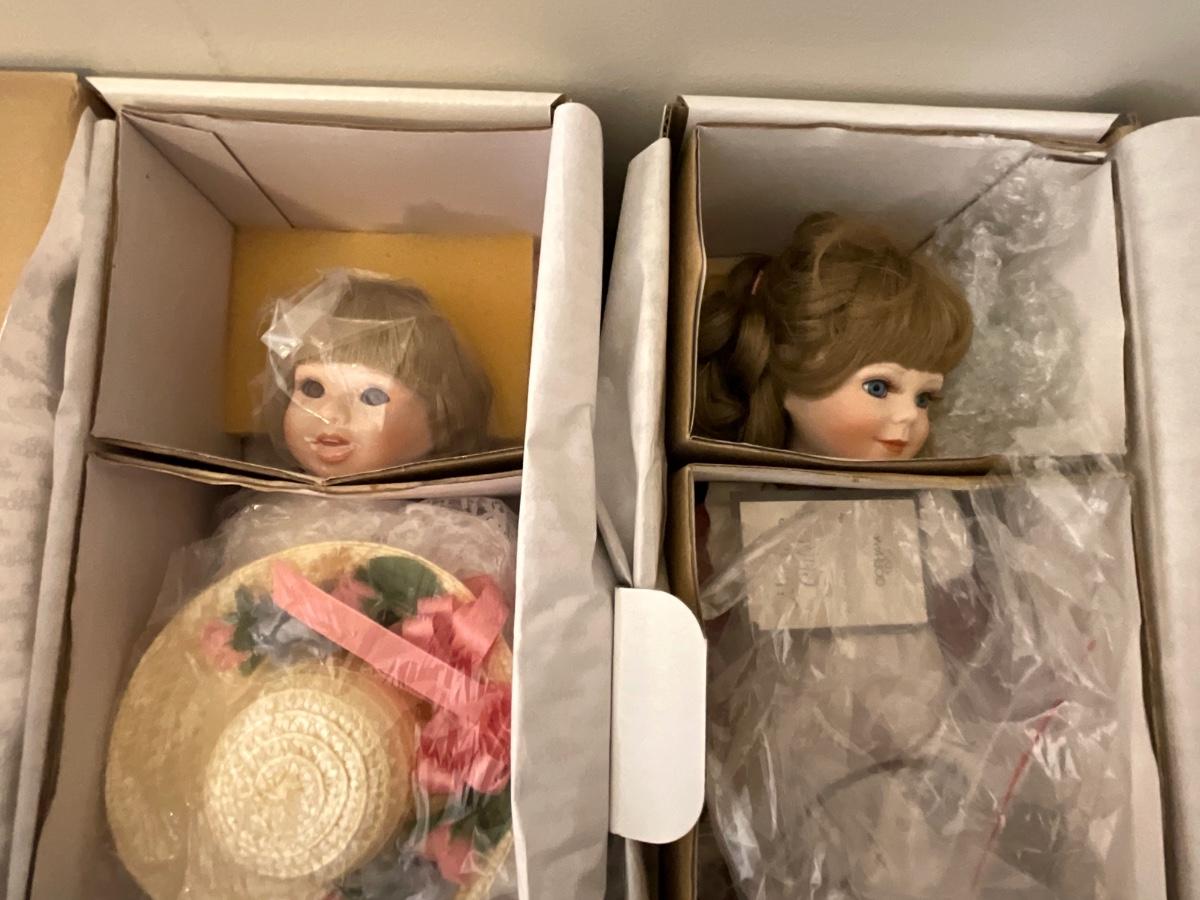 Gorham Days of the Week Doll Complete Set, 7 dolls represent each day of the week, signed porcelain Artists Laurie and Ron Schrudde, for Gorham as pictured