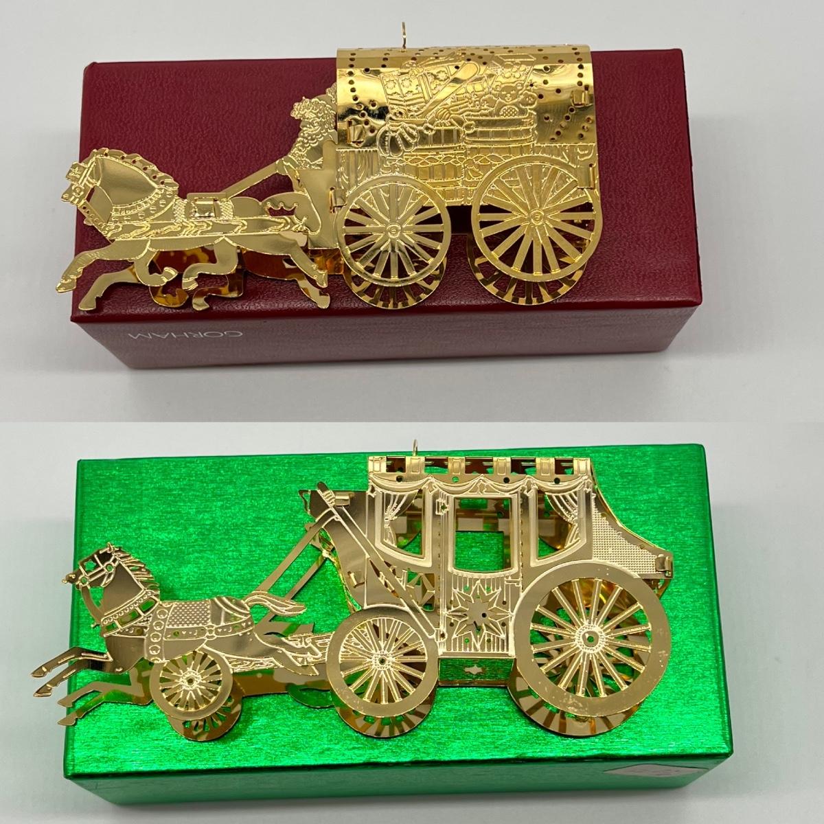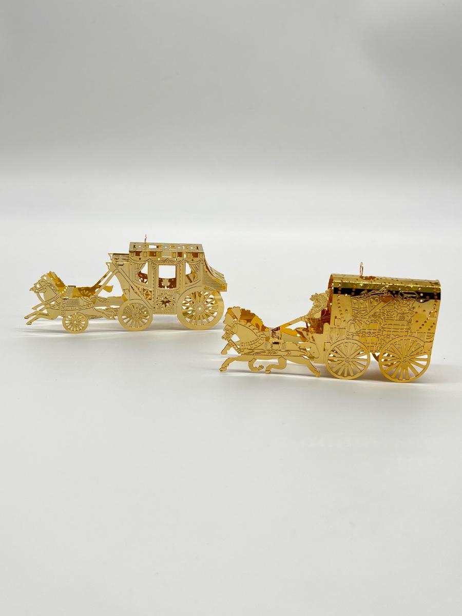 GORHAM - Golden Horse & Carriage Christmas Ornaments ~ Pair (2)