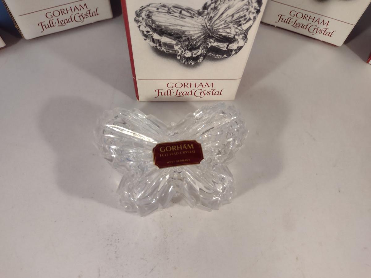 Gorham Lead Crystal Butterfly Design Trinket Boxes- Eight Pieces (Choice A)