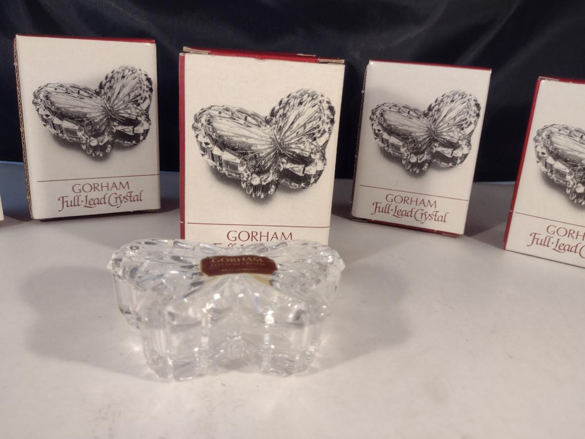 Gorham Lead Crystal Butterfly Design Trinket Boxes- Eight Pieces (Choice A). Boxes included.
