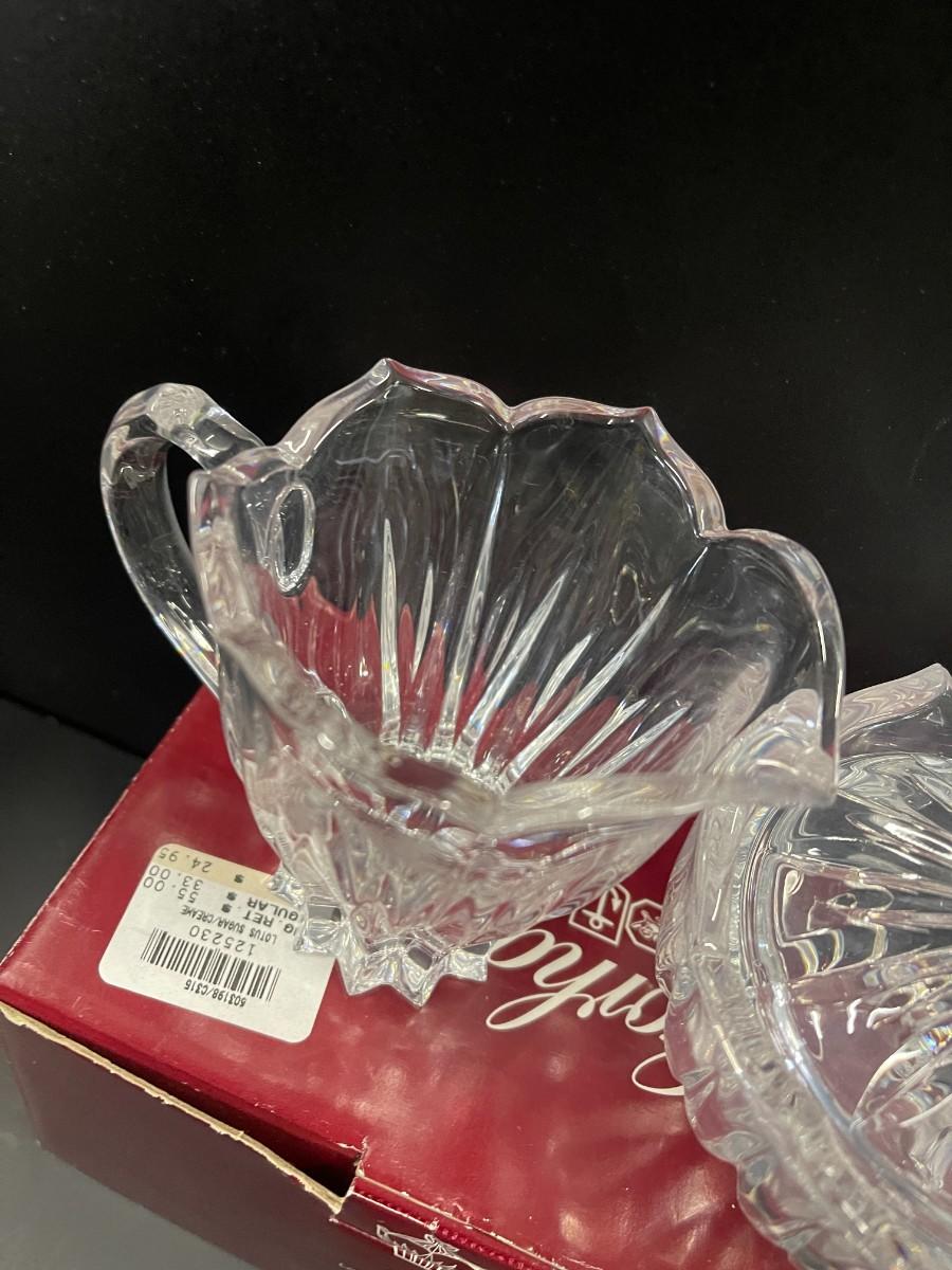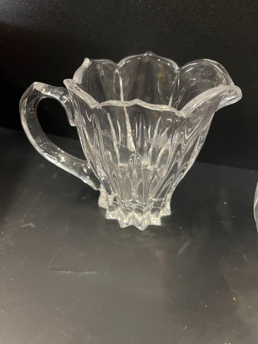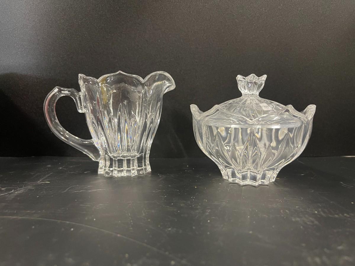 Gorham lead crystal sugar and cream set, Lotus pattern. Made in Germany. Excellent, like new condition. Comes in original box, but box shows wear. # 1176