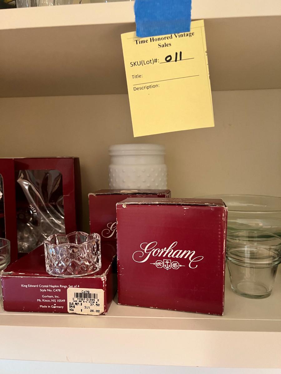 Gorham Napkin rings, table Art, Milk Glass, heavy glass display glass