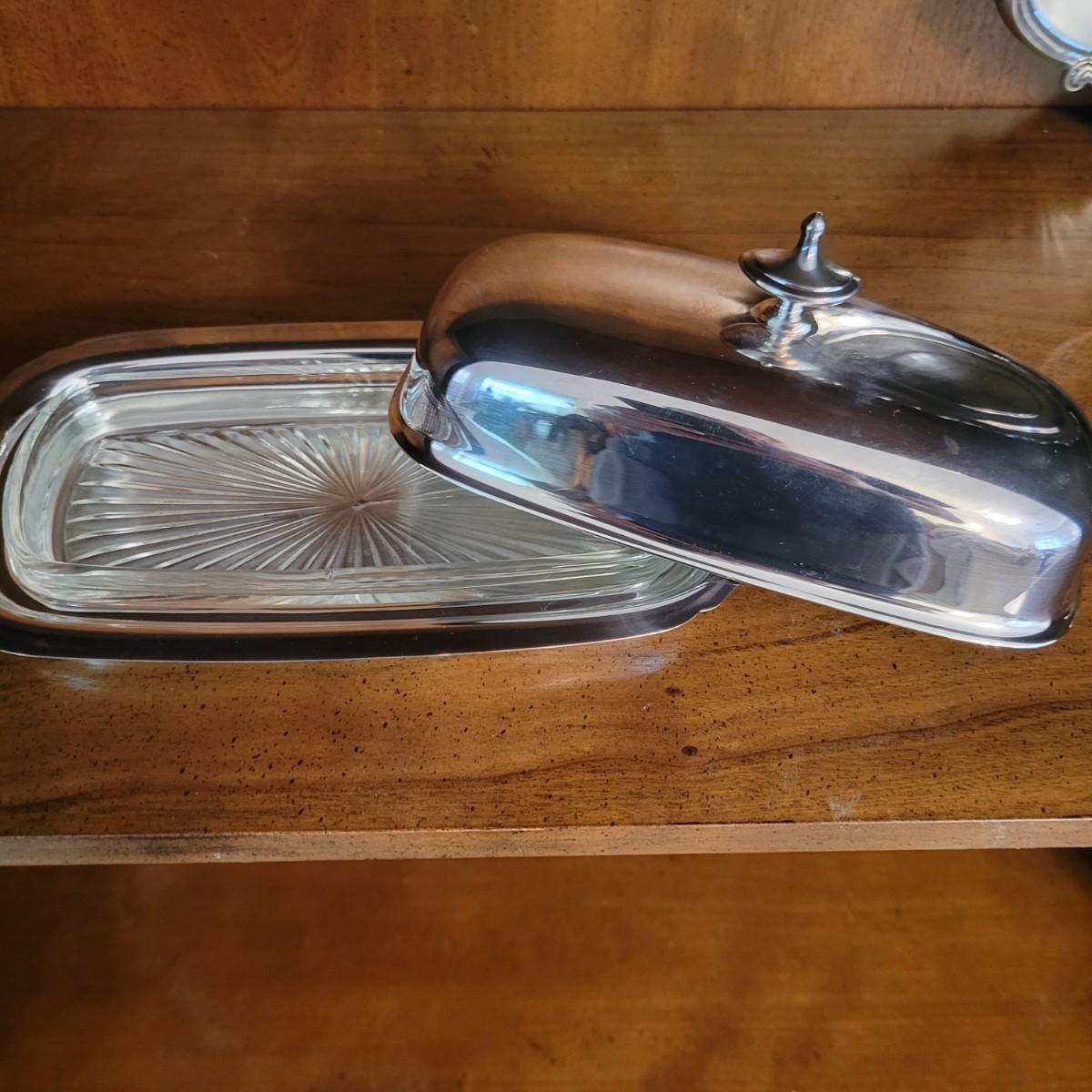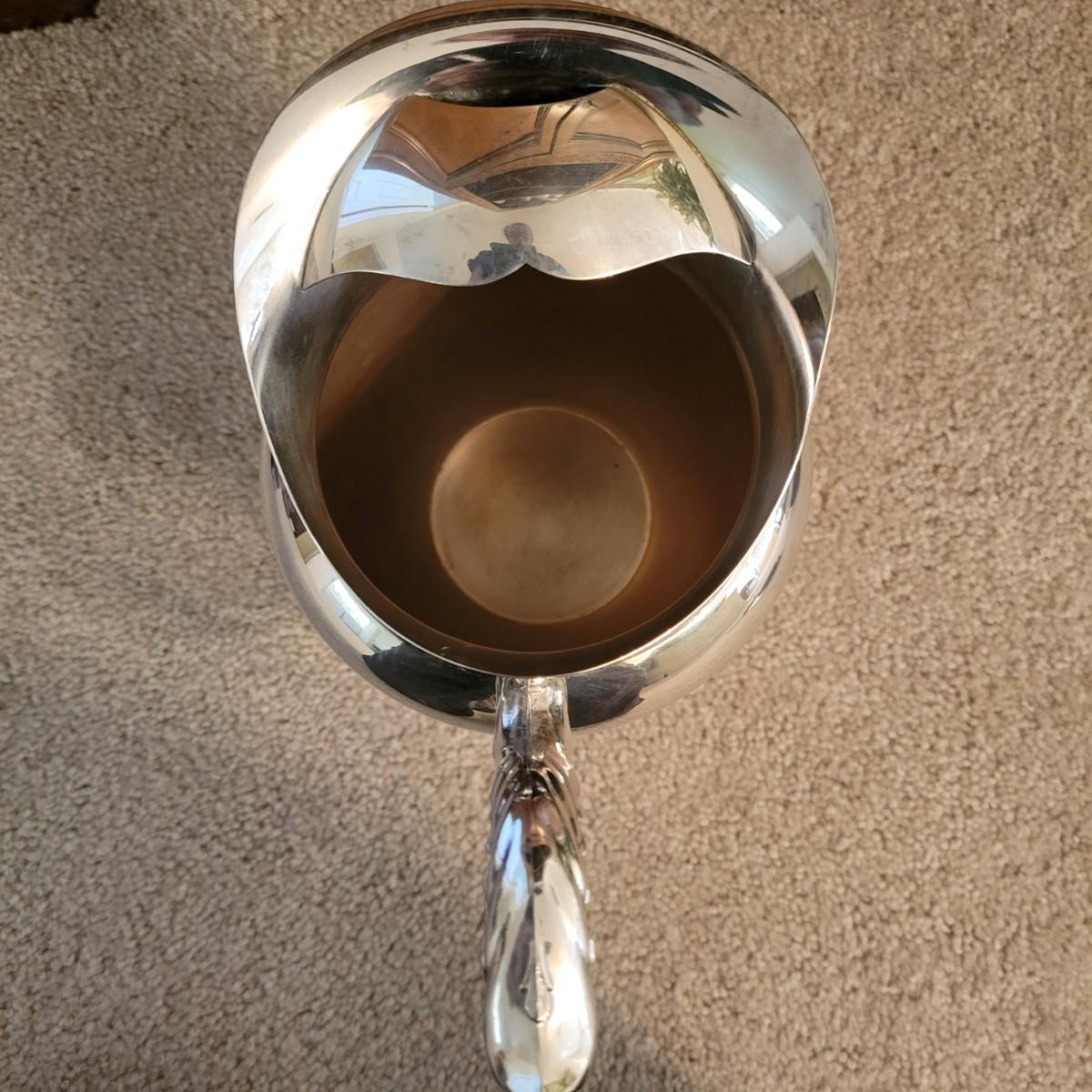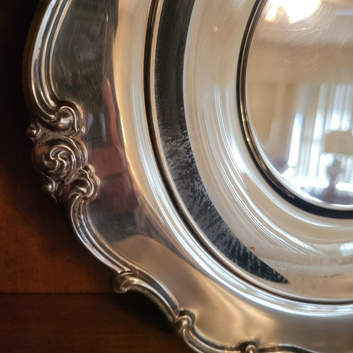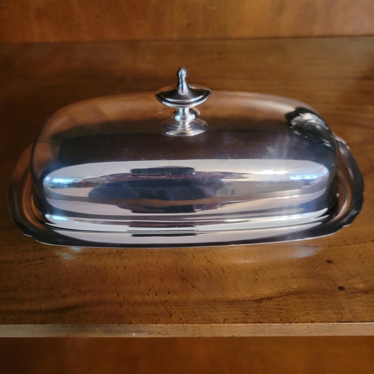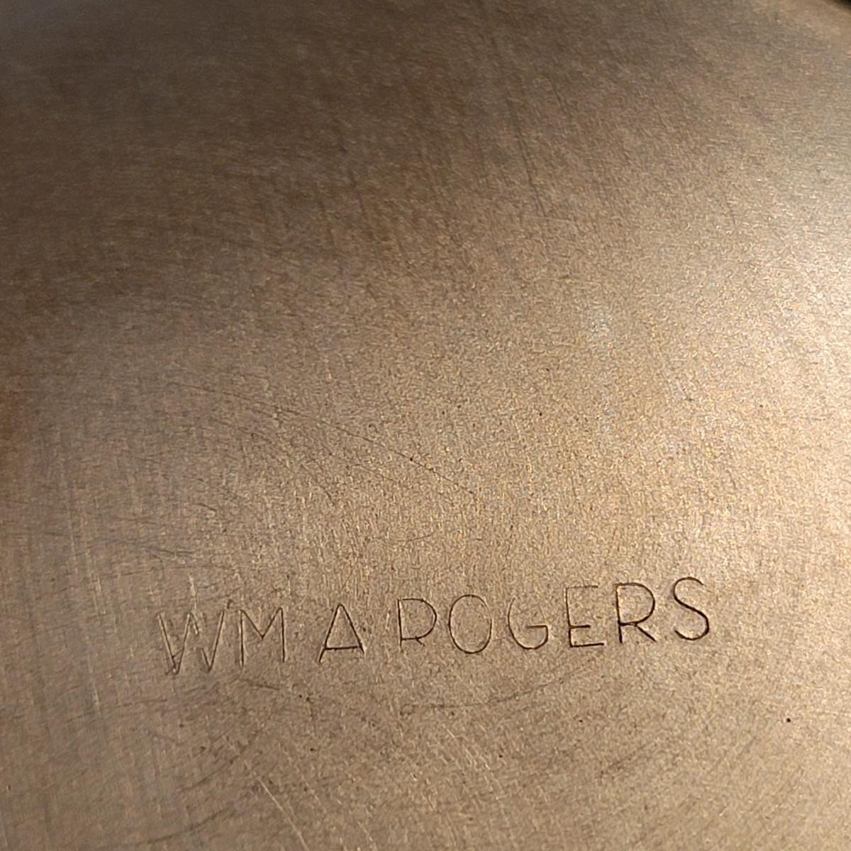 An assortment of plated silver pieces by Gorham, Reed and Barton, and WM A Rogers. The butter dish and smaller bowl are both manufactured by Reed and Barton. Larger plate with a decorative edge is manufactured by Gorham and measures approximately 11.5"D. The pitcher is manufactured by WM A Rogers and measures approximately 8.5" x 5" x 9"H. Shipping available. Shipping can be costly. We suggest contacting our preferred local shipping provider, Postage Express, with dimensions and getting an estimate before bidding: (828) 670-5501 or postageexpress@yahoo.com.