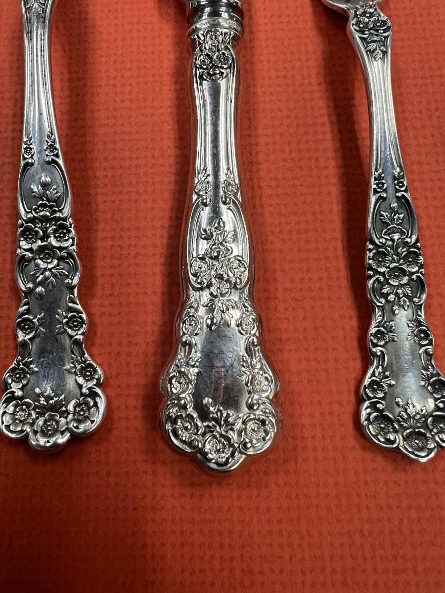 This is a beautiful partial set of Sterling flatware, Service for 6, with extra pieces. .