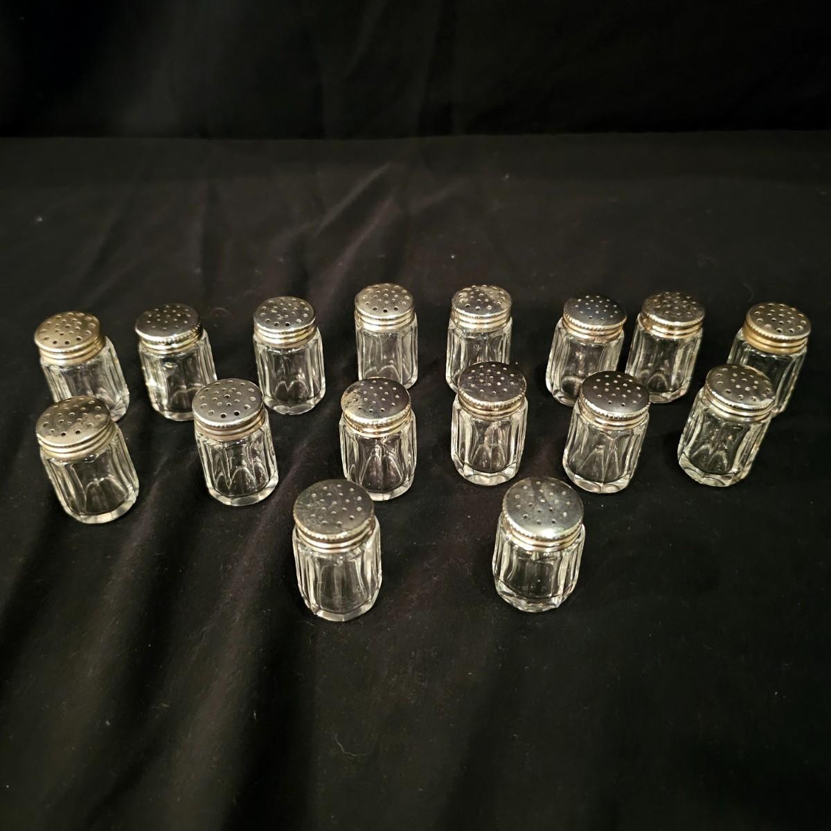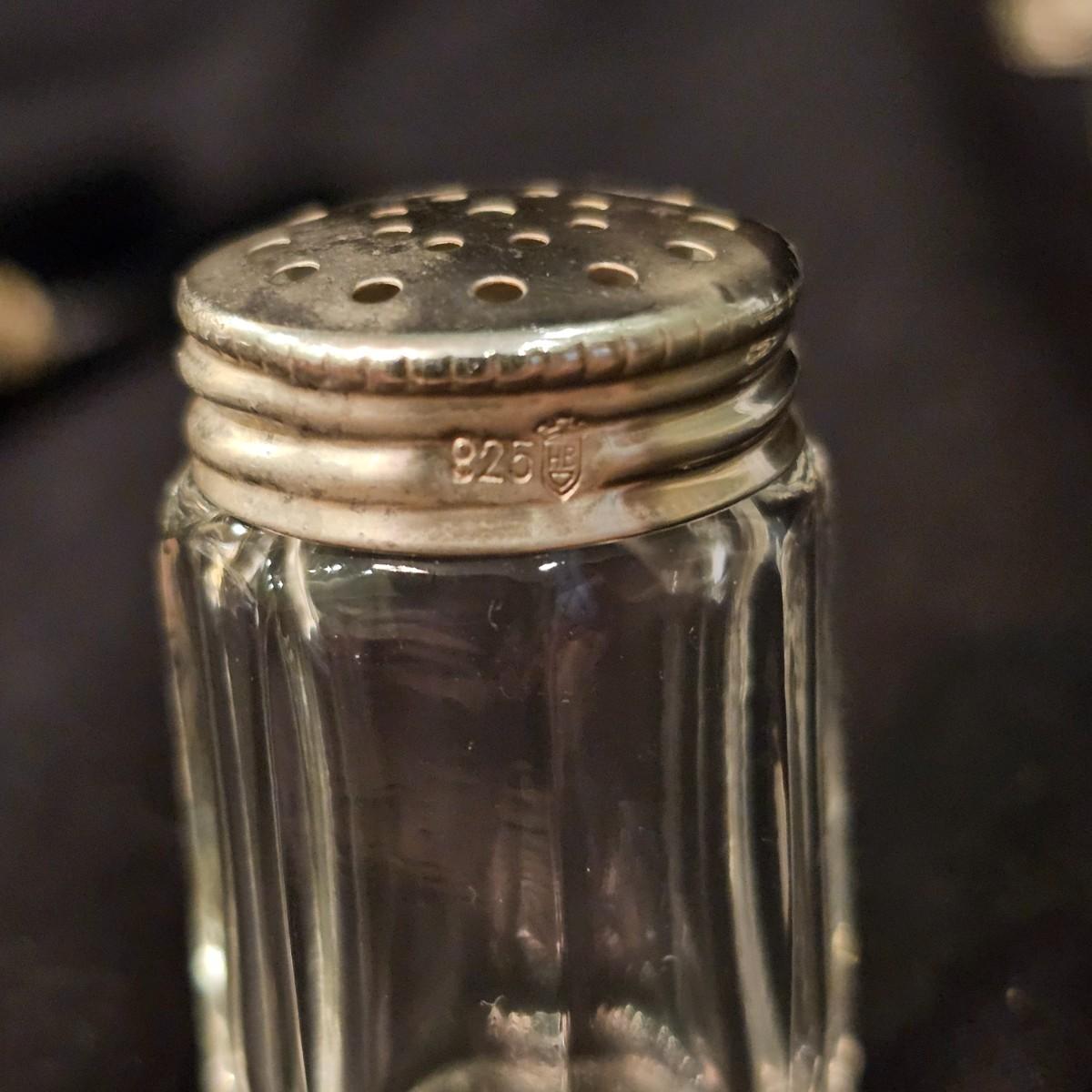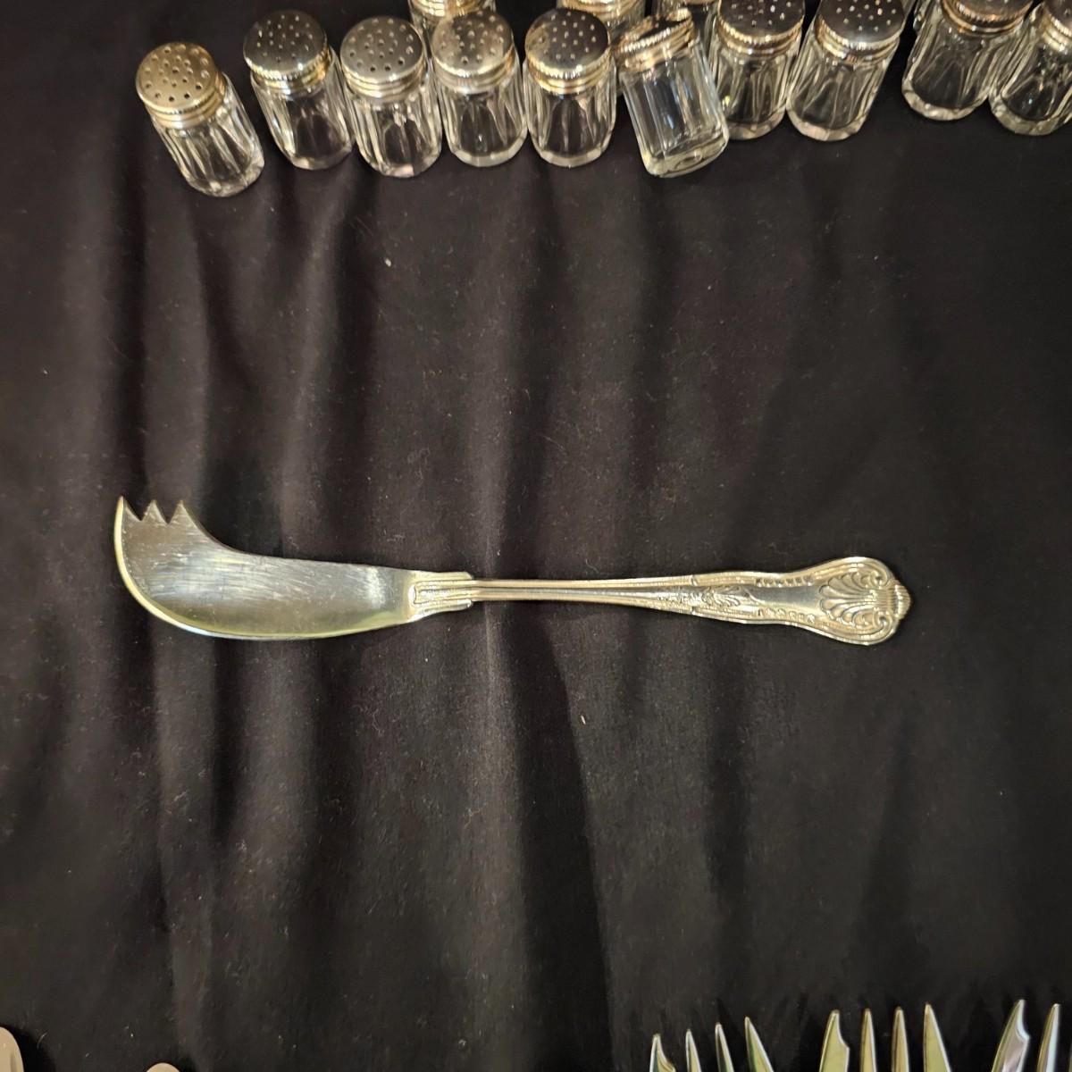 A set of Gorham sterling silver flatware, service for twelve. Also includes serving pieces, four engraved sterling napkin rings and 16 individual salt shakers, glass with sterling tops, marked 925. Note that cheese knife is different from set and is silver plate. 120 pieces total. See photos for details. Shipping available.