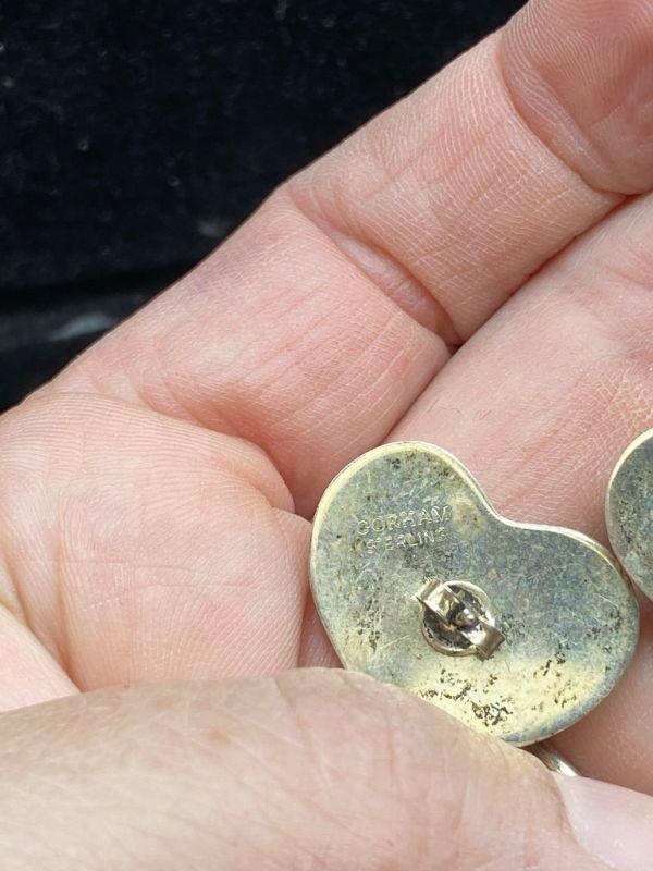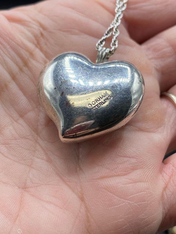 Gorham Sterling Silver Two Tone Heart Pendant Necklace with Matching Earrings