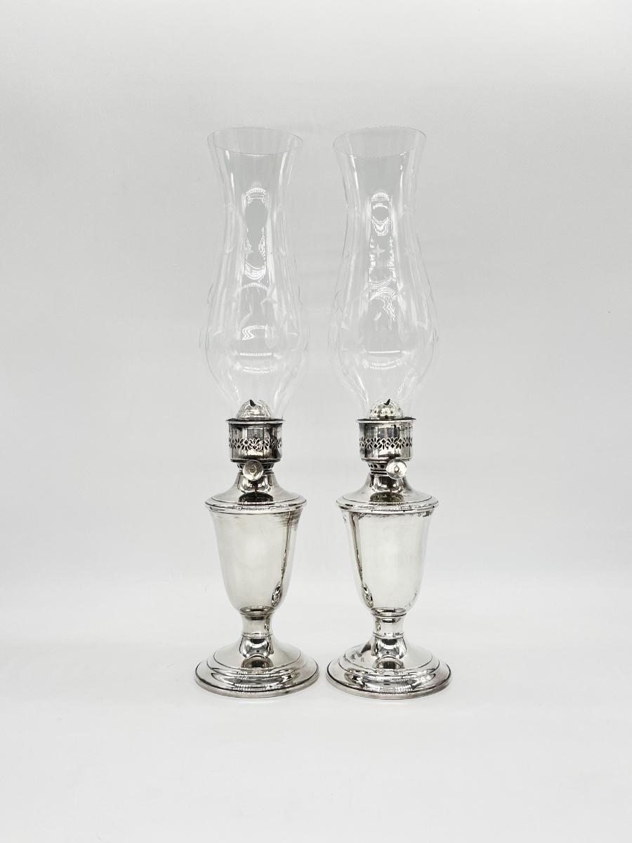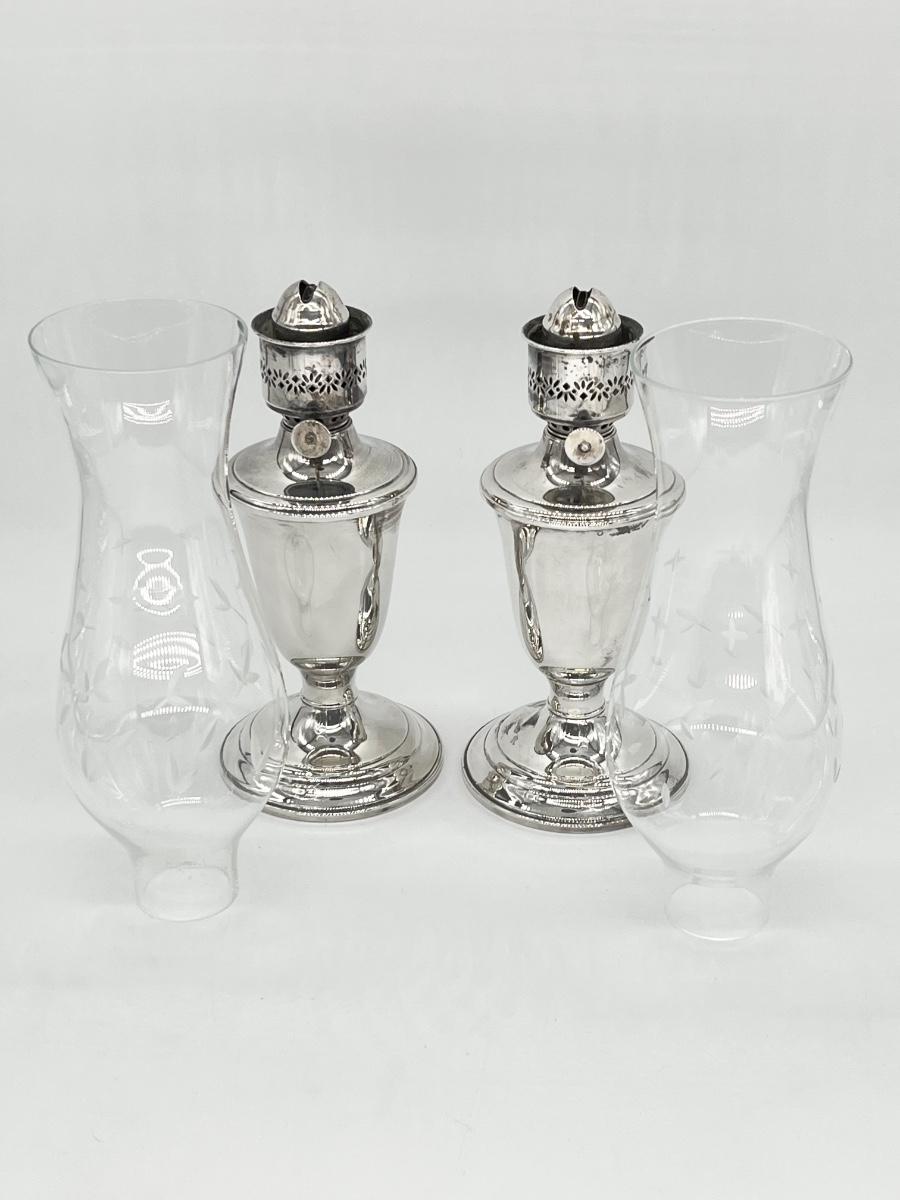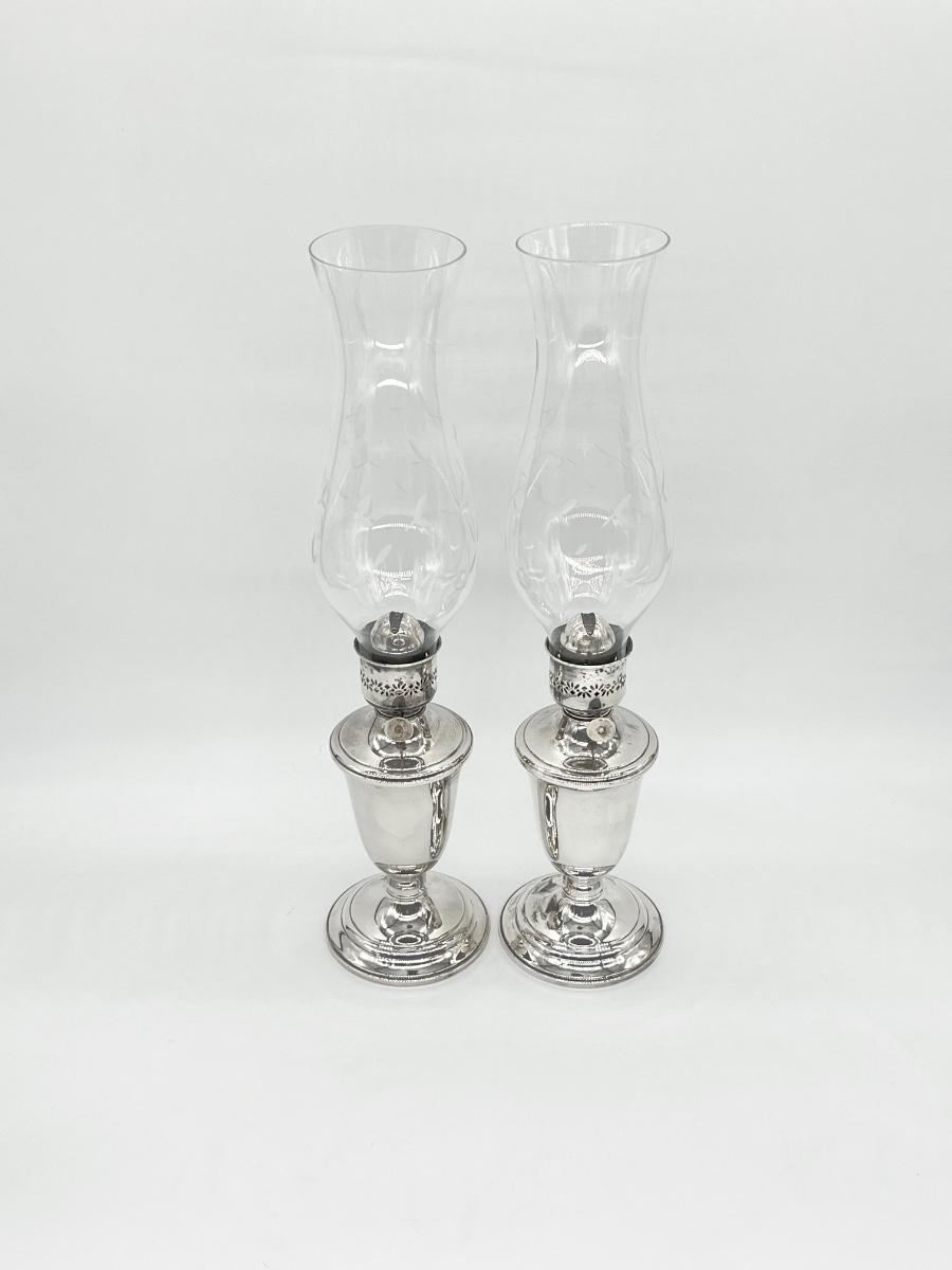 GORHAM ~ Vtg. Silver Plated Hurricane Oil Lamps ~ Set Of Two (2)