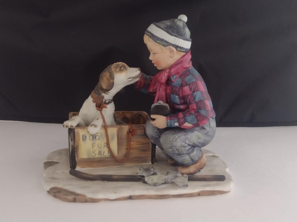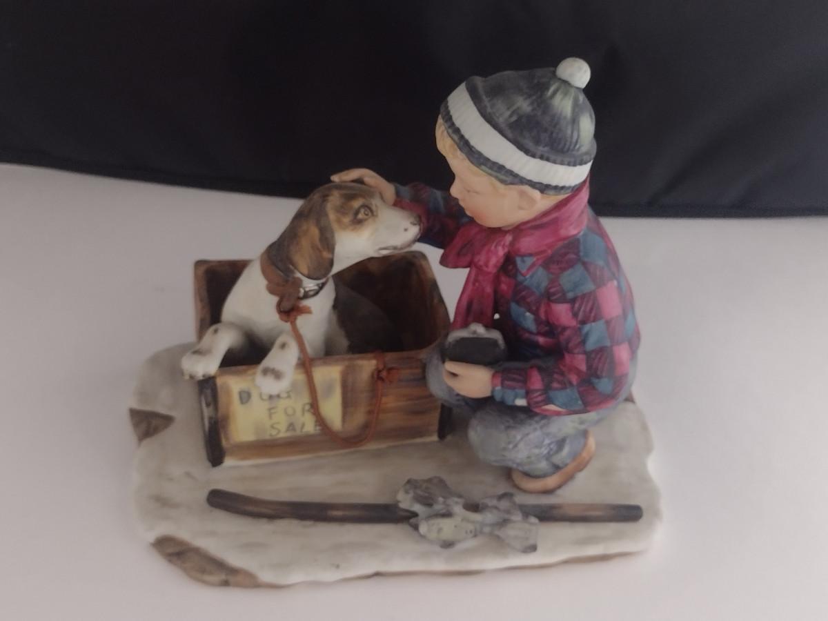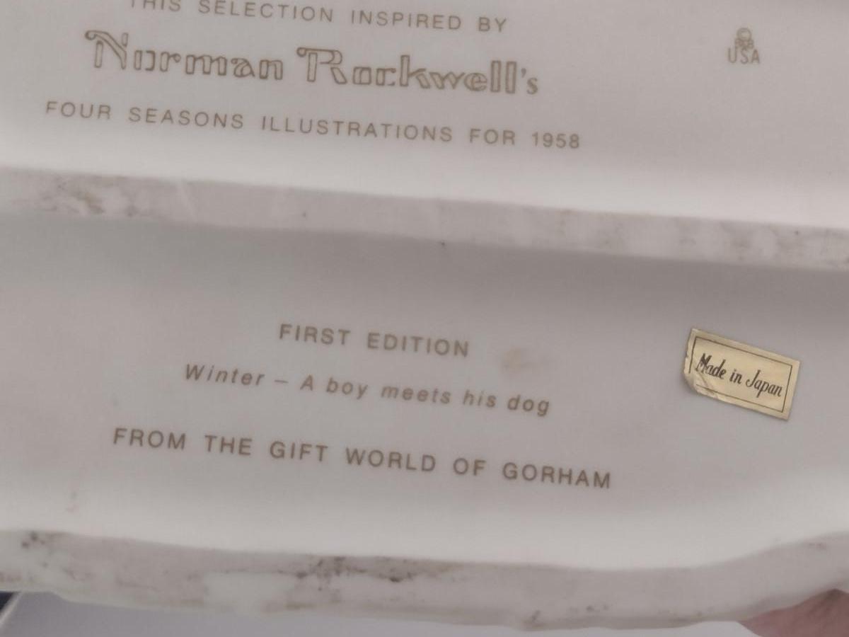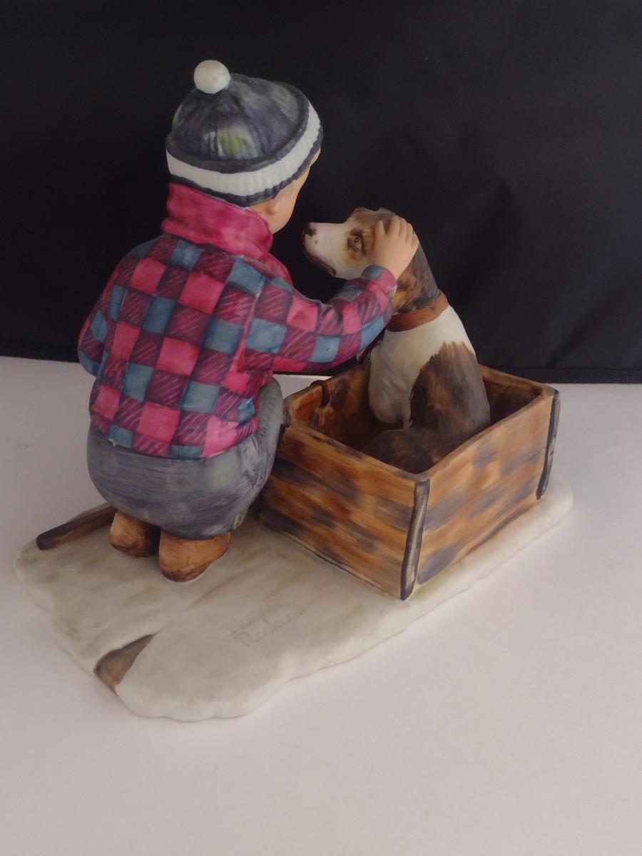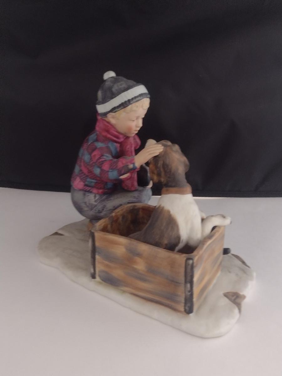 Gorham 'Winter- A Boy Meets His Dog' Ceramic Figurine Inspired by Norman Rockwell