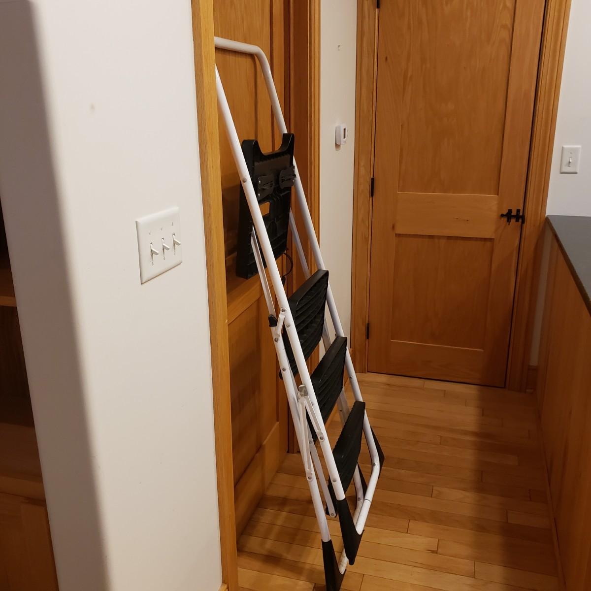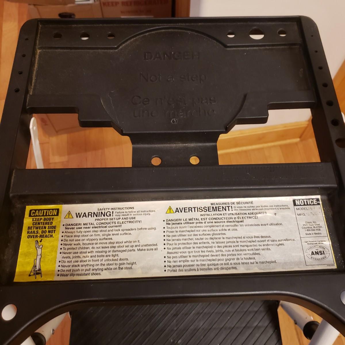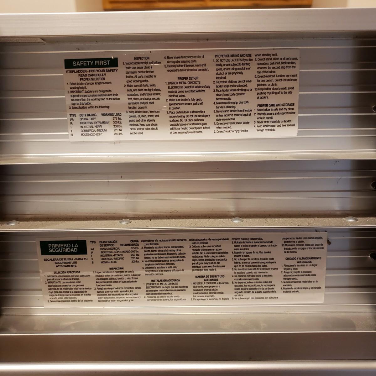 This Gorilla Hybrid Ladder has two top full length steps at the top for added safety. See pictures for specifications. The ladder is made of aluminum. The Cosco step ladder measures 29" x 55"H. This is made of aluminum and has plastic steps. The bottom is secured by hard plastic covers, see picture.