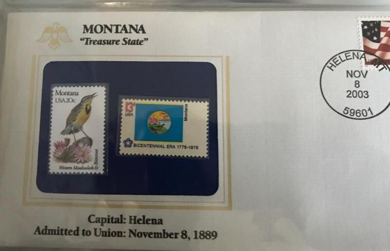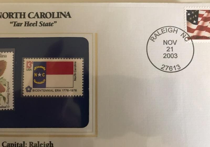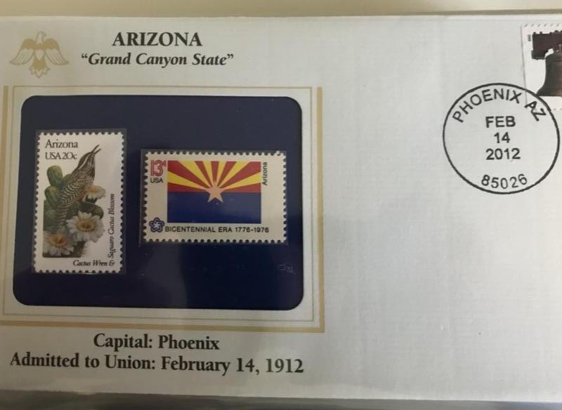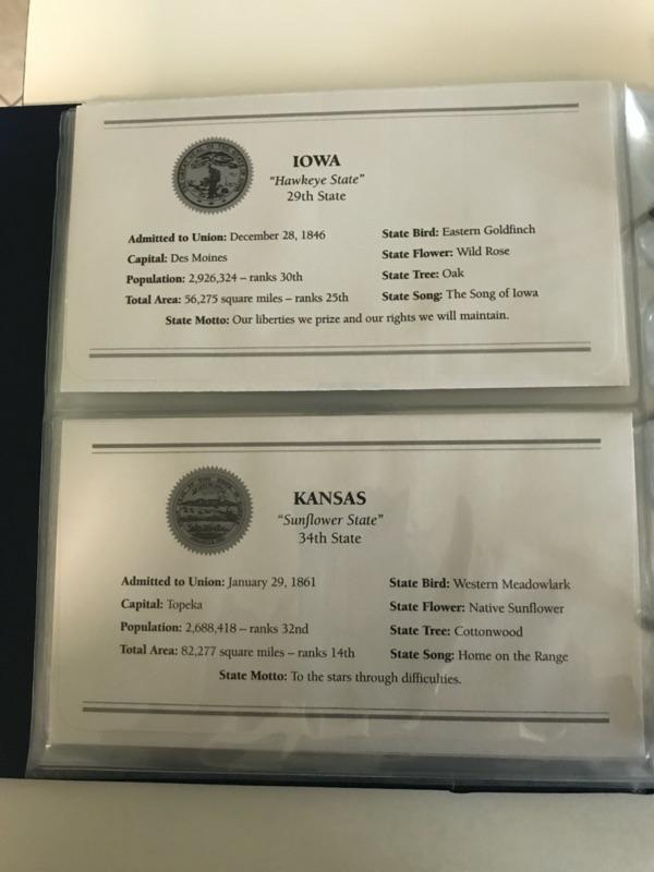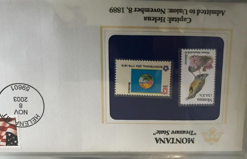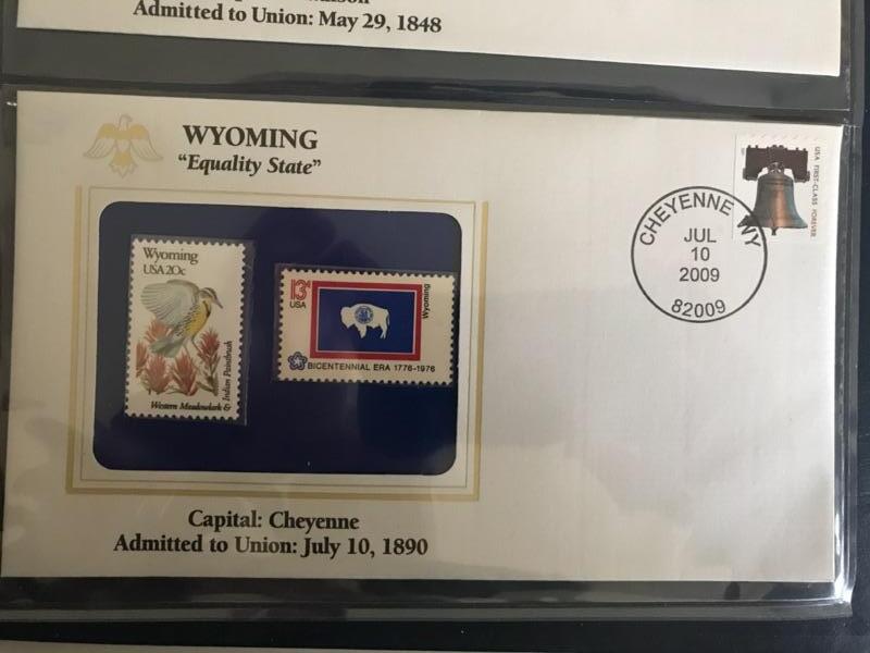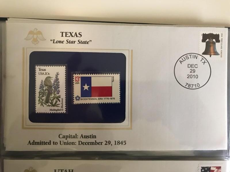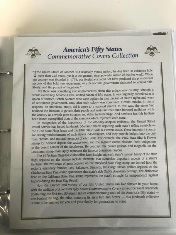 This is a bound book of all 50 US States stamps. The oldest envelop was cancelled on 2003 all the way to 2011. Each envelop has details about each state.