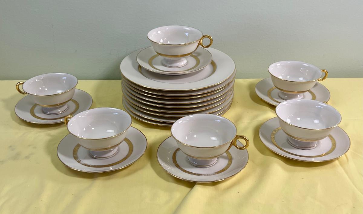 Gotham Made in America Gold Stripped Dessert Set Coffee Cup, Saucer and Plate