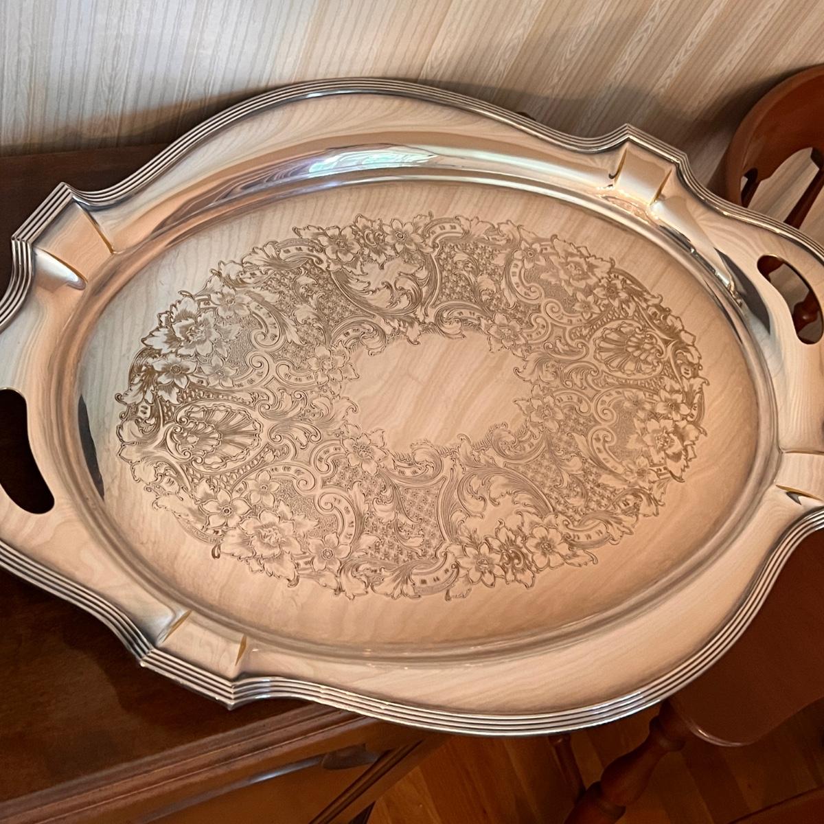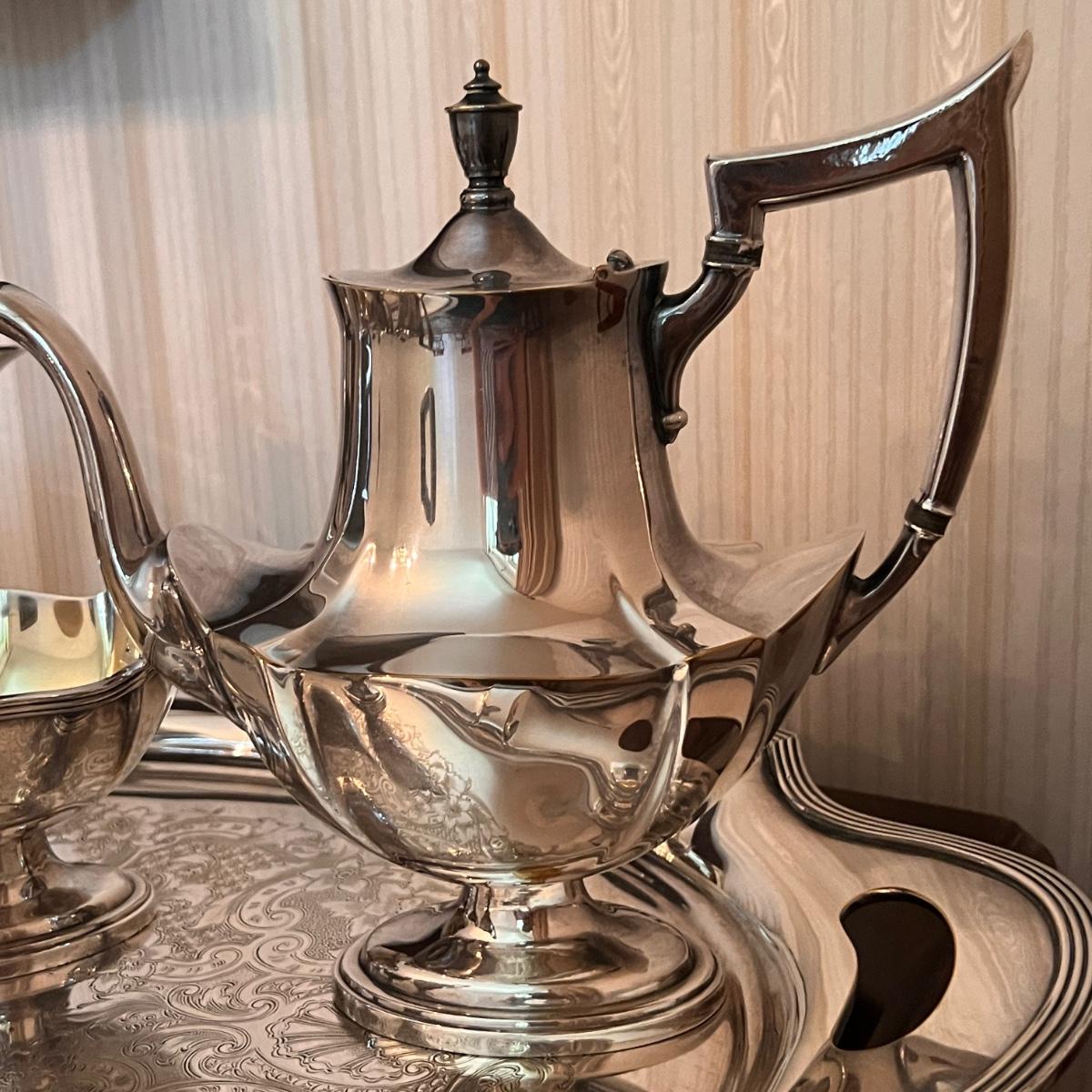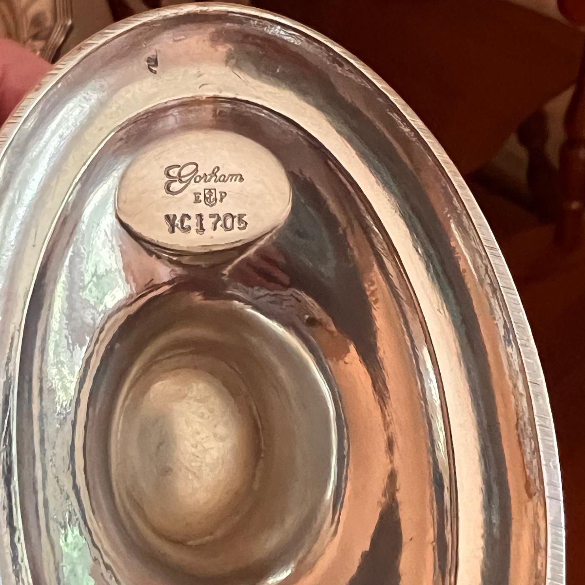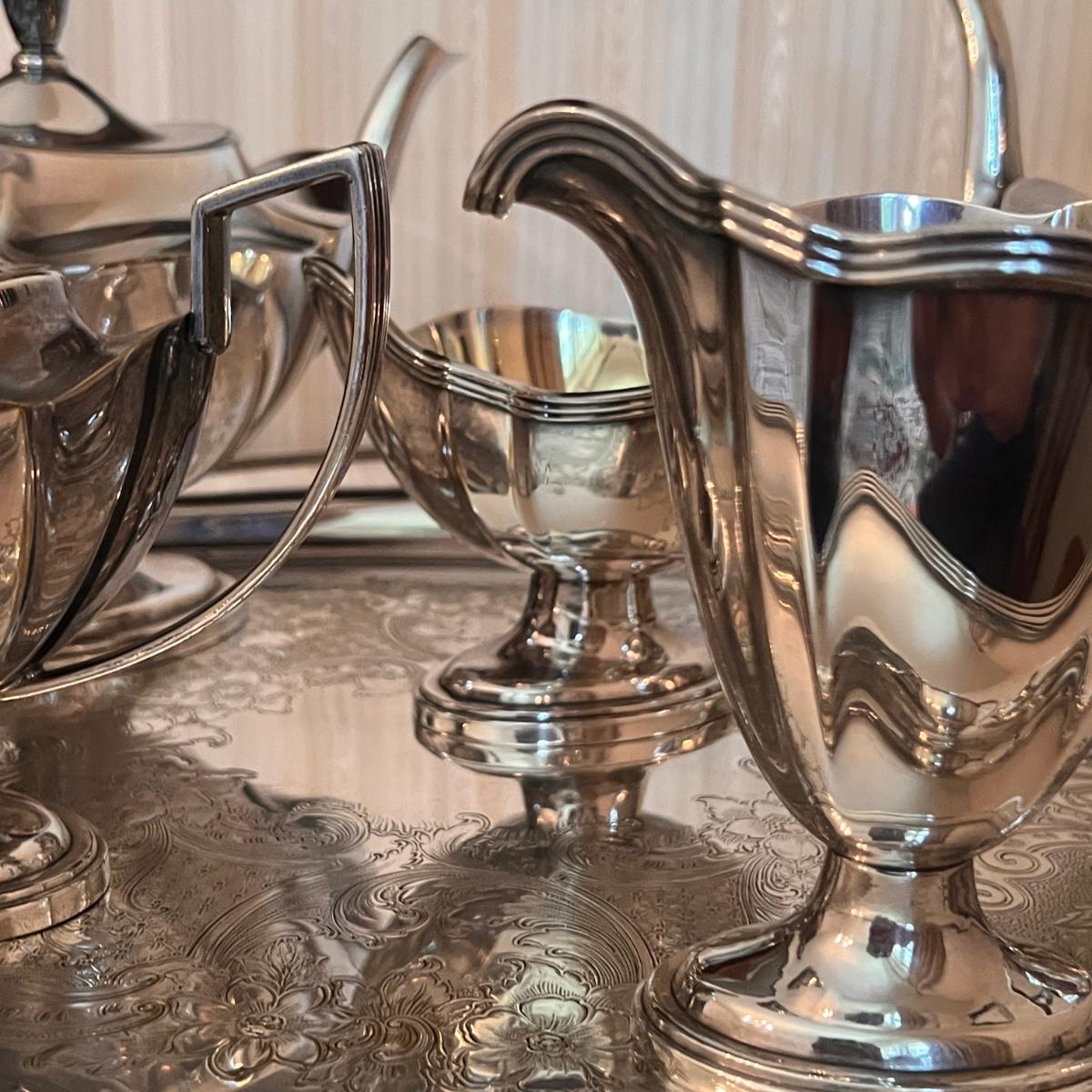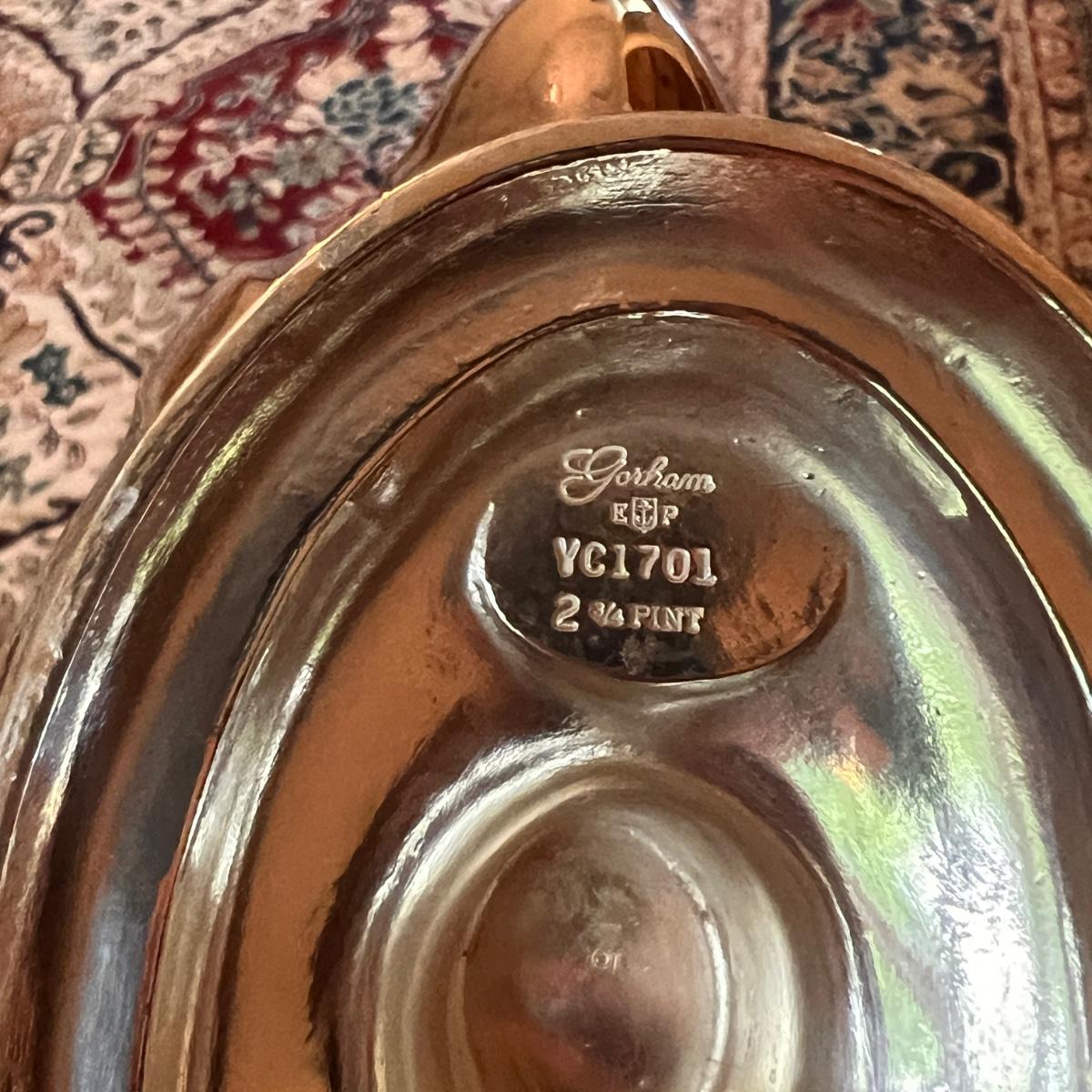 All the pieces except the tray have stamp Gorham YC1703. In very well kept condition. Believed to be Plymouth Bay collection. Silver plate.