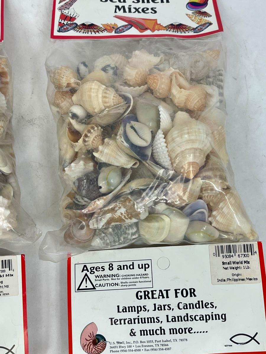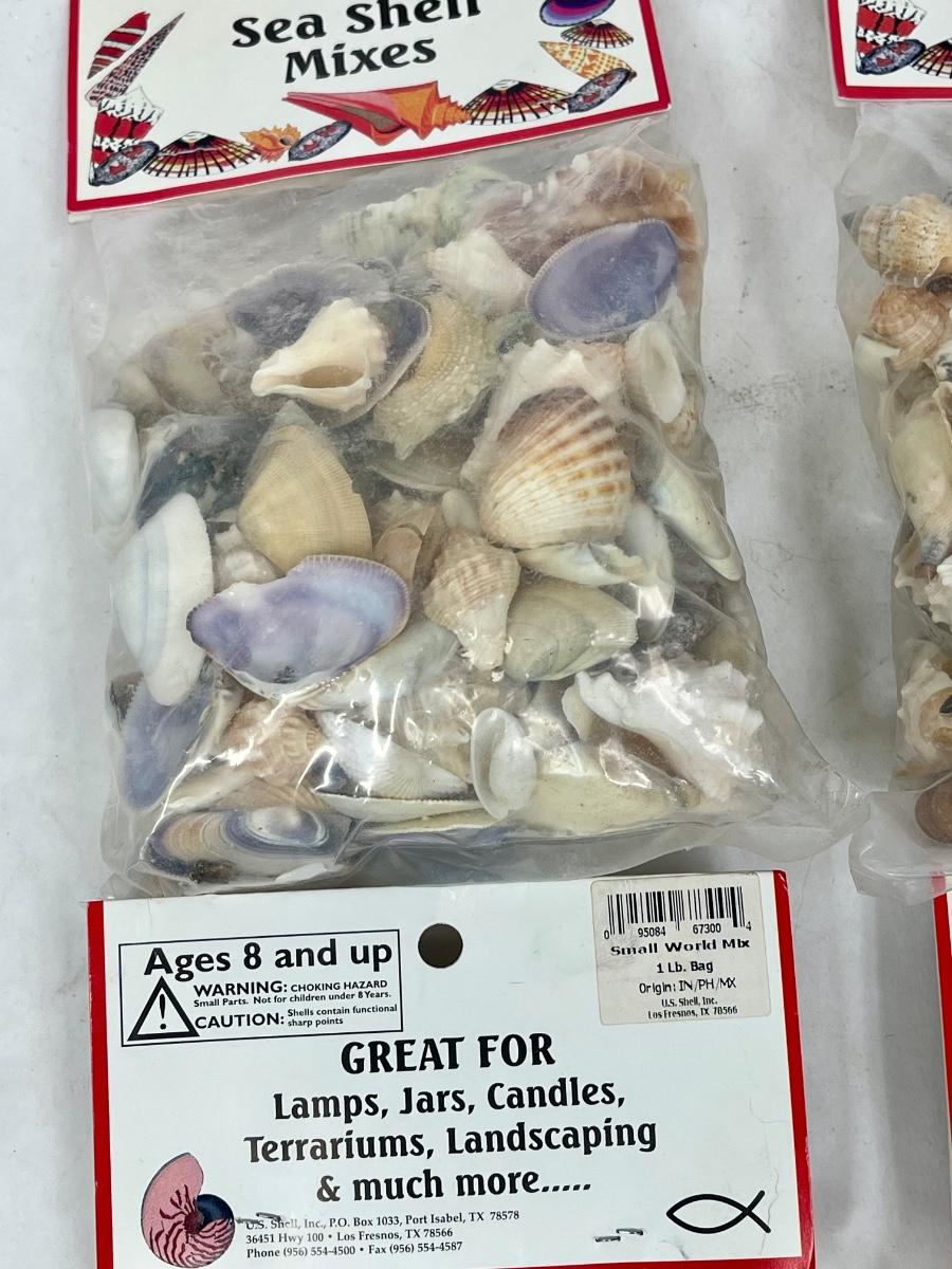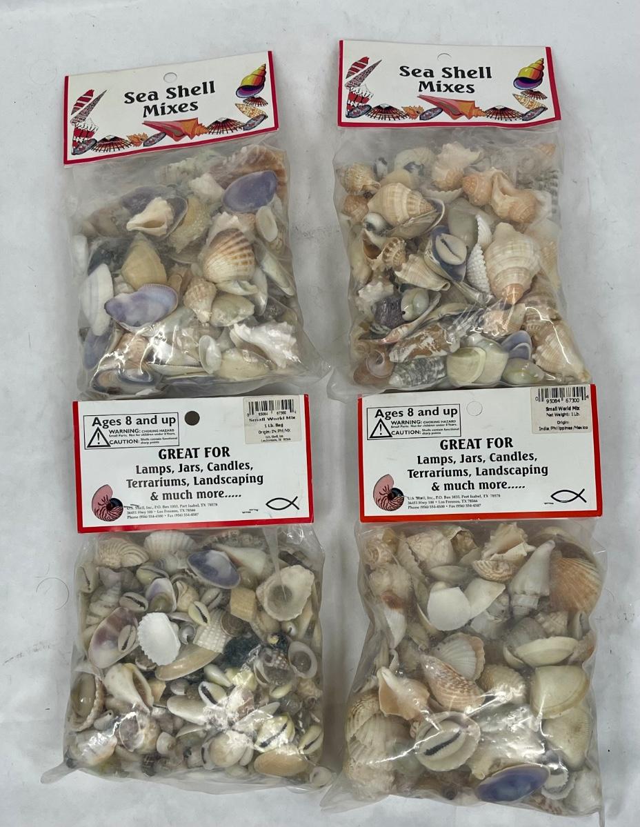 Lot of (4) 1 pound bags of mixed shells - for Lamps, Jars, Candles, Terrariums, Landscaping, and more