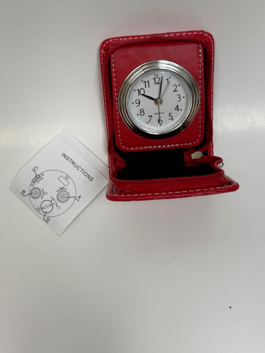 Folding Vintage Compact Red Travel Alarm Clock - Quartz - Analog