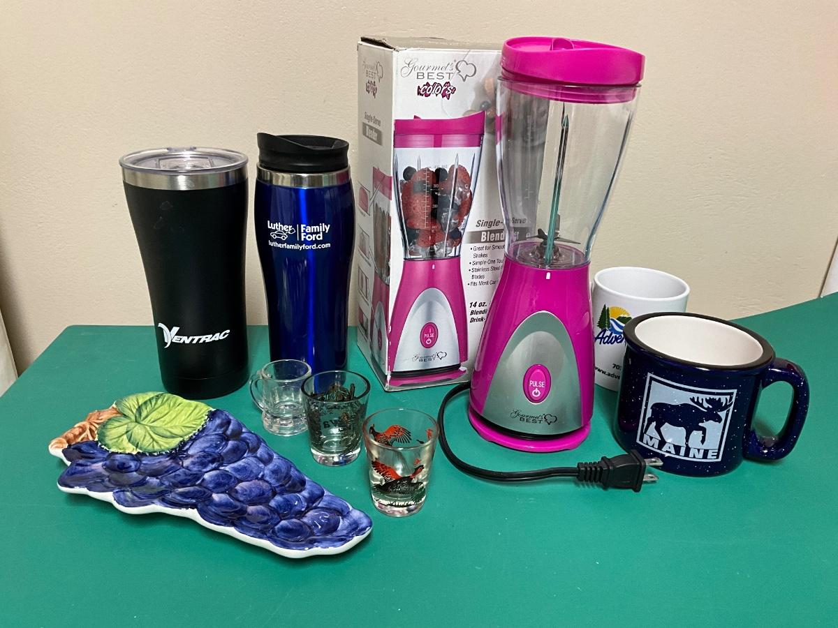 Gourmet’s Best Blender, Italian Pottery, shot glasses, insulated tumblers, plus