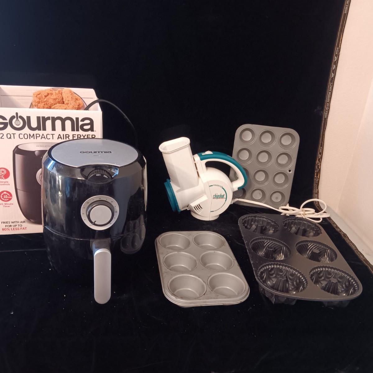 GOURMIA AIR FRYER, CHIPSHOT AND MUFFIN PANS