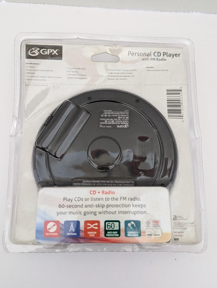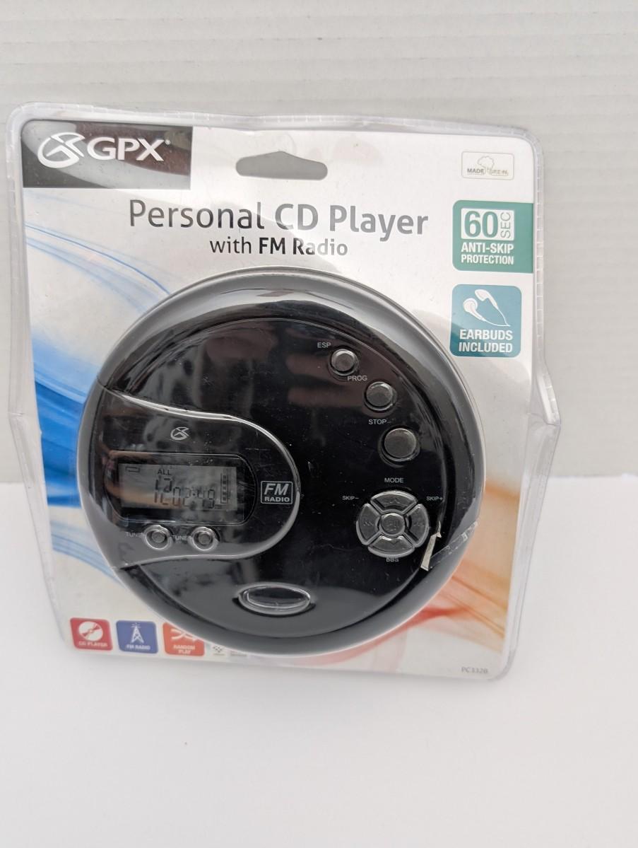 GPX CD player, portable CD player, new old stock electronics, FM radio player, anti skip CD player, vintage style electronics, sealed CD player, retro music player