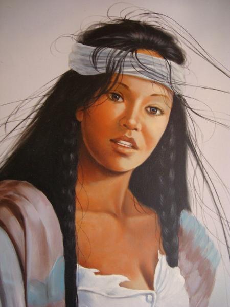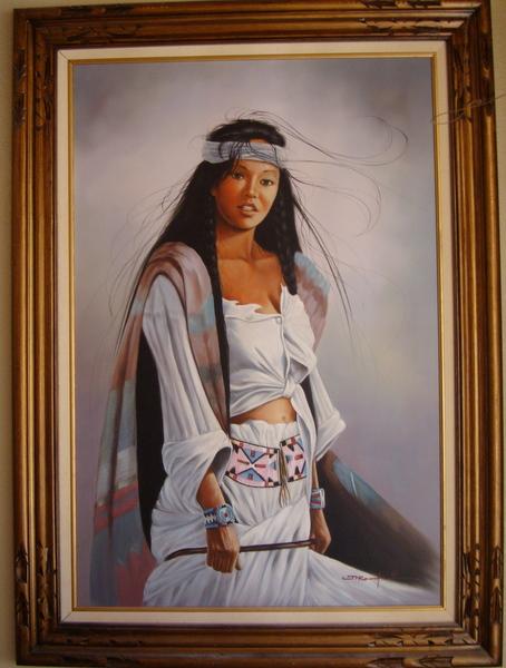 GR 147 - Framed painting of Indian Girl 43 3/4" tall