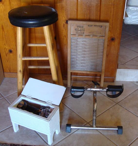 GR 184 - Shoeshine box, Bar stool, Washboard + Exercise apparatus