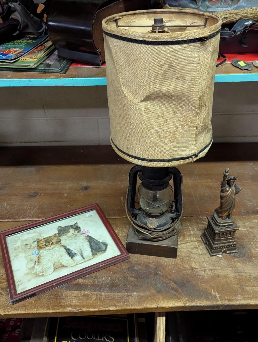 Grace Lopez Kitchen Picture Electric Dietz Glass Oil Lantern Brass Statue Of Liberty Vintage Bottles