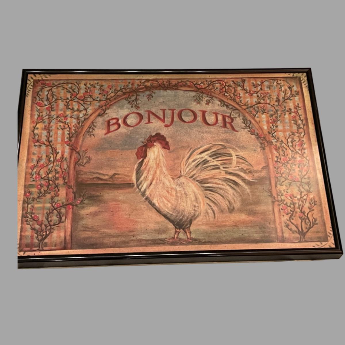 This is an adorable print from Grace Pullen. Titled "Bonjour," it would go great in any kitchen. This picture measures 27 x 18