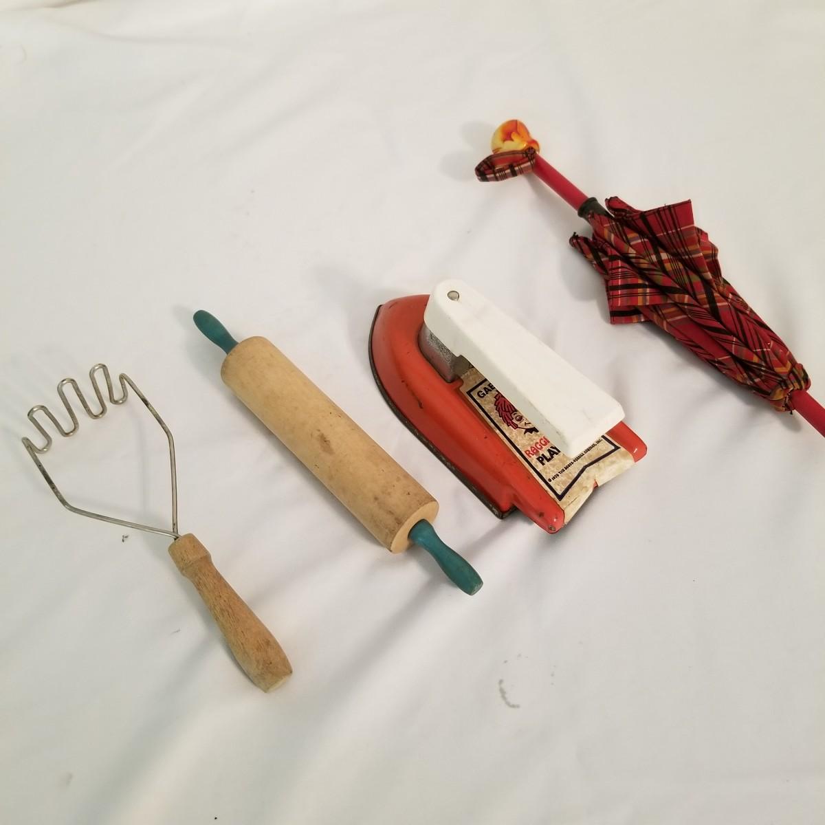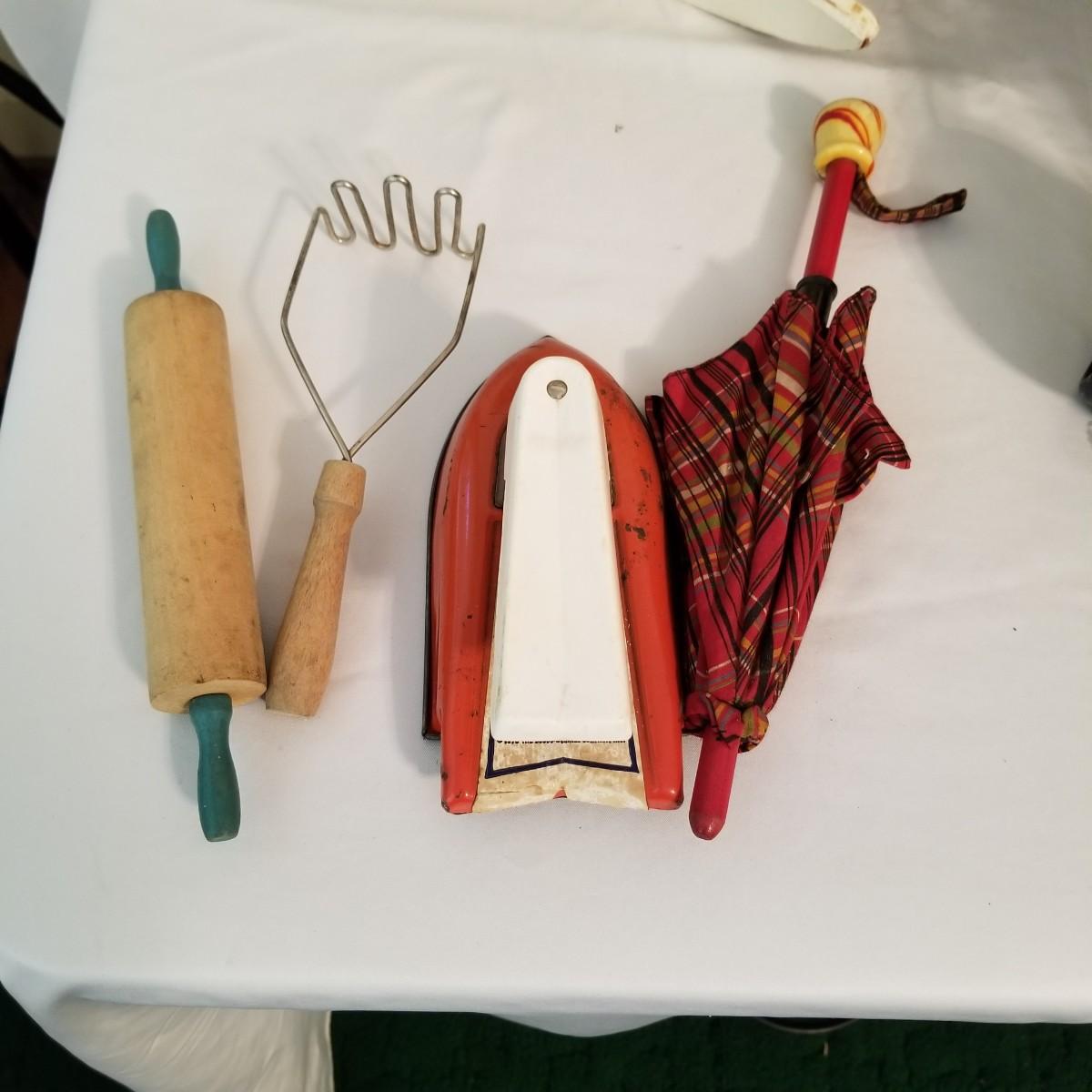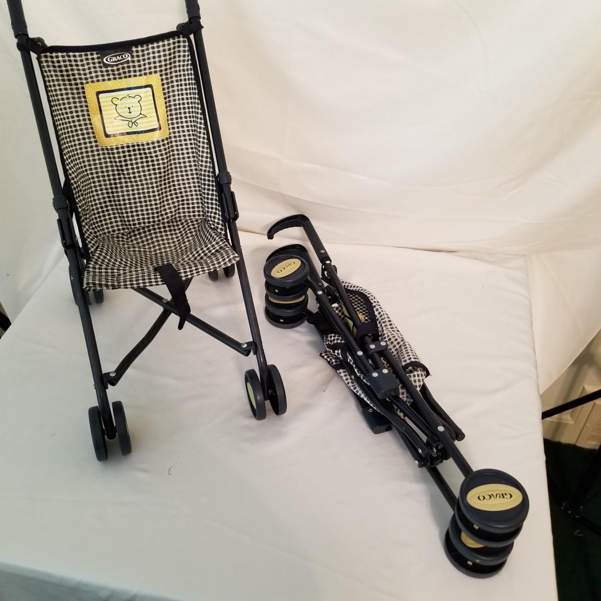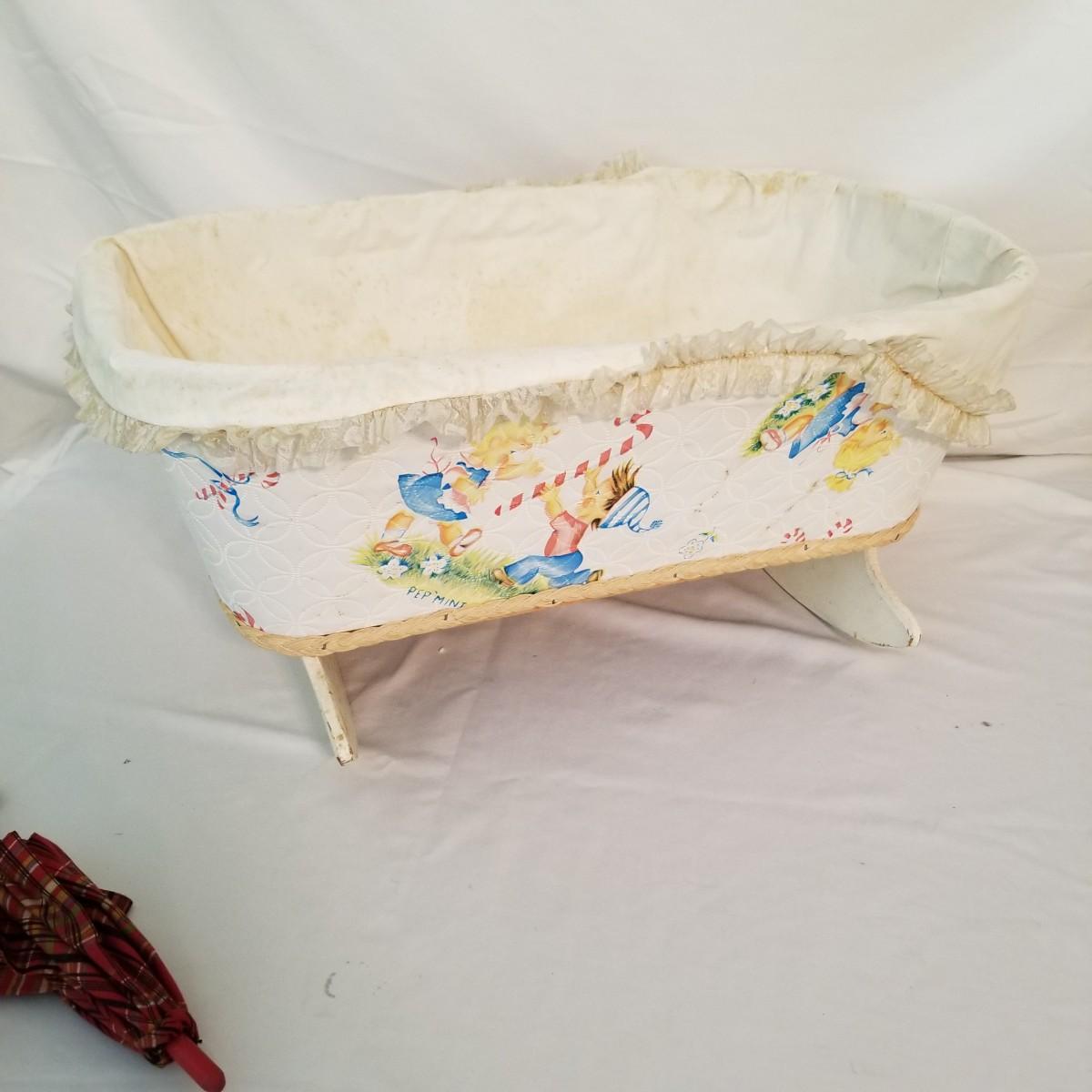 Two Tollytots Graco strollers, one sock monkey plush toy, a vintage rocking cradle and some assorted child's toys. See photos for detail. Crib is 20" x12" x10", strollers are 10" x19" x24". All items gently loved. Local pickup only.