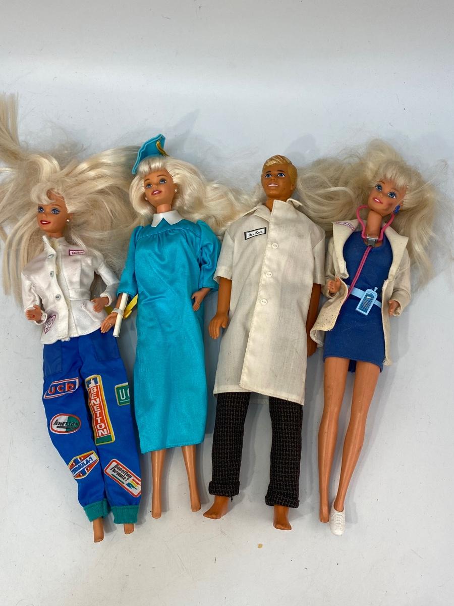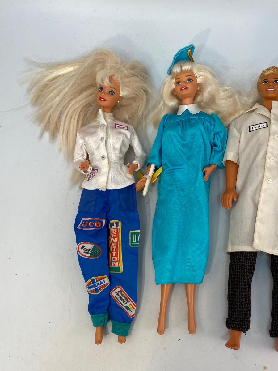 Graduate Barbie, Dr. Barbie and Dr. Ken, Formula 1 Barbie Fashion Dolls. Played with conditions.
