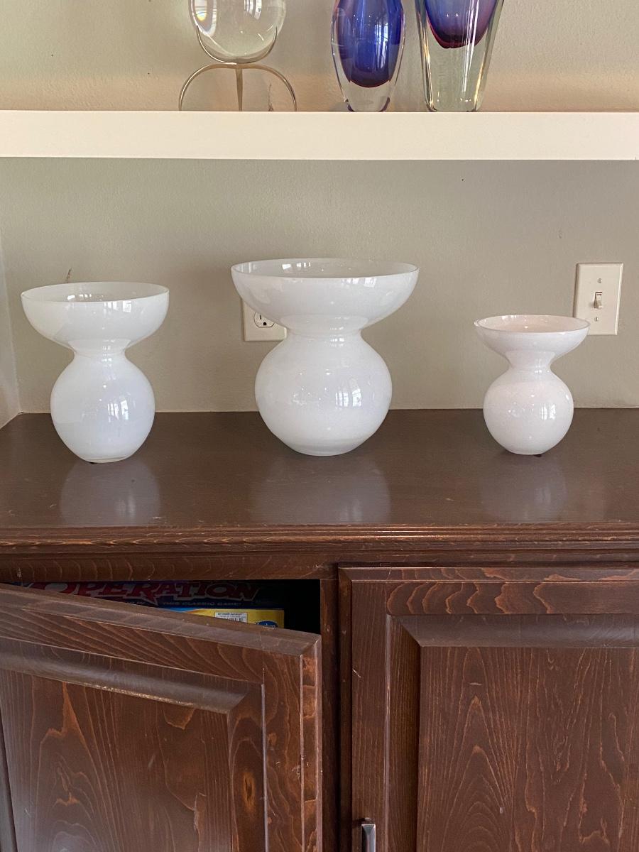 Graduating sizes milk glass vases