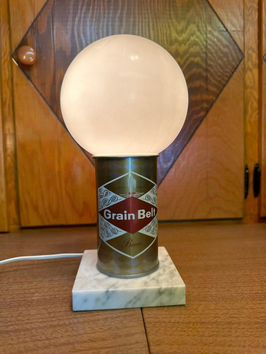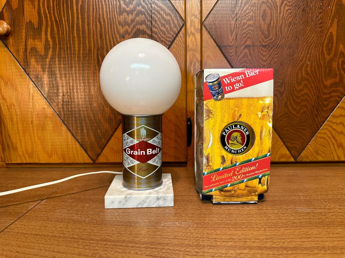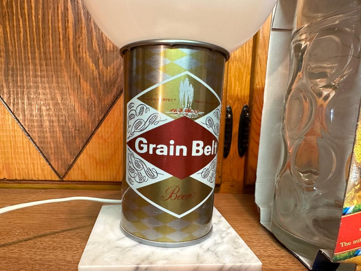 GRAIN BELT BEER LAMP AND A BEER MUG W/ADVERTISING