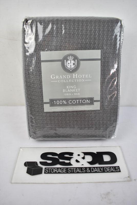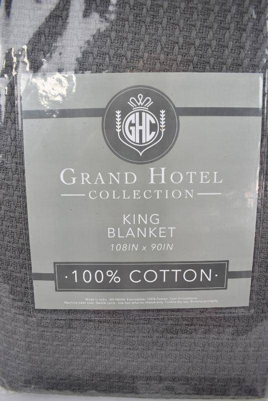 Grand Hotel King Blanket, 100% Cotton, Gray, 108" x 90", $27 Retail - New
